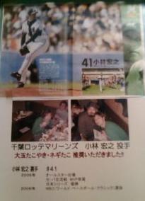 大嶺君、やりましたね~。北海道の地で、ダルビッシュ君を相手に、初白星。これは、かなりの快挙ですこのタイミングを待っていた・・・ということにしましょうよ私が見た7月17日も日ハム戦。大嶺君初白星が見れるかと、マリンに行ったのですが、残念だった。次はぜひマリンでね。 アナゴ丼、美味しかったな。隙間(左の方の青と白の「京葉銀行」の看板の上の辺り)から、海が見れるんだよぉ。写真だとわかりづらいかそして、本日は、福岡で0対14ですか・・・。北海道から福岡への移動、大変でしたね。パリーグは、ほんと広いな~。交流戦でパリーグが強いのは、長距離移動に慣れているおかげだと思うぞ。さ。気持ちを切り替えて、また明日も頑張って