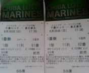 座席票がロッテのHPになかったので、こちらのサイトから頂きました。ありがとうございますm(_"_)m☆ 幕張サラリーマン 出動っ!今日の楽天戦、ファンクラブ会員のポイントを使って、内野SS席(青の印の席)を取ってたんですよぉ~頑張って行ったのに、雨で中止となりました…あぁ。。ポイントいつ返って来るんだろう。ポイントの期限がもうすぐなので、早く次のチケット取りたいんですよね。そして、今日の俊介のピンバッジは明日の振り替え試合の配布となりました。でも、明日の方が天気やばそうじゃない?