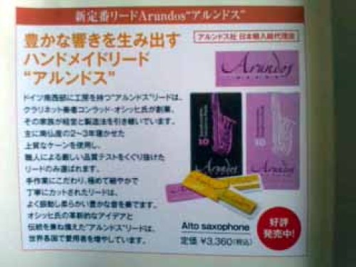 アルンドス?聞いたことない・・・。楽器屋さんからのお知らせに載っていました。 → こちら。試しに使ってみたいな~と思ったけど、楽天内ではまだ扱ってるところがないみたい