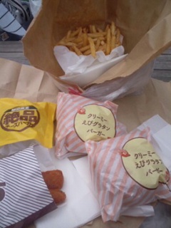 日曜日、マリンに行く前に、ロッテリア海浜幕張駅前店に寄ってお買い物。マリンの中にもロッテリアあるんだけど、メニューが少ないんだよね。クーポン券使えないし。クリーミーえびグラタンバーガーを食べました。なんで、クリーミーえびグラタンバーガーとエビバーガーのセットクーポンはないんだろ。えびえびしちゃうから?それが良いのにねぇ。そんなわけで、相方はクリーミーえびグラタンバーガーとエビバーガーが良かったらしいけど、せっかくクーポンがあるので、絶品チーズバーガー(写真のイメージよりかなり小さいよね)。美味しかったけど、なんでトマトなんだろね?トマトじゃないと、マックと同じみたいだから?でも、海老が入ってるんだから良いじゃないの~。まぁ。結局、ロッテリアって言ったら、エビバーガーがうまいよね。そうそう、バケツポテトを買ってみました。さすがに2人でバケツは多かったか。。マリンで開場までに外で食べてたんだけど、ポテトの残りは野球観戦しながら食べました。そして、途中で再入場スタンプを押してもらって外周のお店にクレープを買いに。生クリーム多いぃ~~(笑)キットカットが入ってたよ( ̄m ̄)