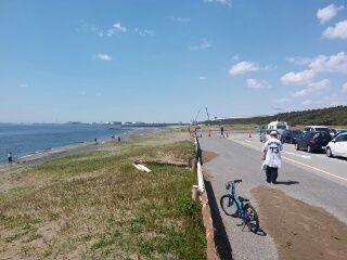 マリンフェスタのZOZOマリンに行ってきた。番外編。今日は、幕張の浜の方の駐車場に停めました。海ちかーい!良い風が吹いてました♪松林を通ってマリンへ。松の花粉すごっ!!花粉症の薬のコマーシャルかってくらい花粉が舞っている…。スギとかヒノキとかは聞いたことあるけど、マツの花粉症もあるのかな?ここの駐車場、出口の窓口が1つしかないのよね。そして後払いなの。一律600円なのに。帰りは大渋滞ですよ( ̄▽ ̄;)試合終わって、車に帰ってしばらく様子を見てても、かなりの奥の方に停めちゃったし、列がぜんっぜん進んでいかない。途中から合流してる車もあるしなぁ(´ω`)野球関係なく浜辺に遊びに来た人は巻き込まれて大変だな(-_-;)停めた枠から動かずに1時間くらいそのまま待って、(相方はお昼寝してました。)ようやく車も減ってきたので、列の最後に並んでみました。まぁ、そこからも結構待ったけどね( ̄▽ ̄;)満員になりそうな試合ではここは停めない方が無難かな?まぁ、帰り急がない時なら良いんだけども。