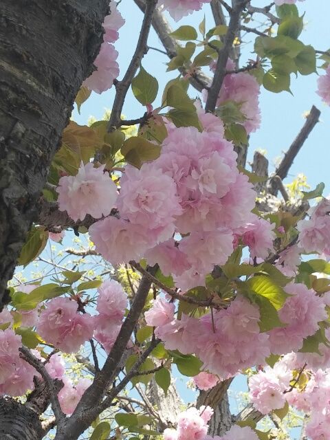 昨日のマリンまでの道中の八重桜。八重桜って牡丹桜ともいうんだってね(*´∇`*)