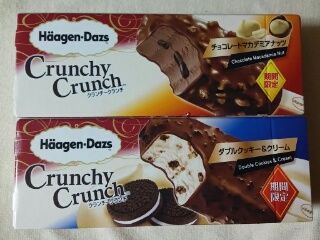 2つの期間限定クランチークランチ。「チョコレートマカデミアナッツ」「ダブルクッキー&クリーム」カップのクッキー&クリームが大好きなので、かなり期待していました‼そうかー、バーになっちゃうと、チョコの量が多いな( ̄▽ ̄;)カップでダブルクッキーにしてみたバージョン食べてみたいな~。美味しかったんだけど…チョコが多いと甘すぎ?