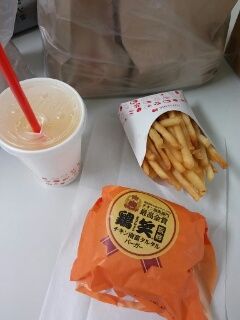 ロッテリアで買って、楽器の練習場所に行って食べた。お手伝いで乗った演奏会の前日だな。ちなみに、予想日記とはちょっと違い、練習が終わった後に、倉庫の整理を少しして、ロッテリアでお買い物をして、早めに練習に向かいました。早く楽団の練習場所に行って、係の仕事と練習をしようと、空いている部屋の予約をしようとしたら、今までと場所の取り方が変わったため、うまく部屋が取れず(T0T)たとえば・・・今までだったら3時半にたどりついたら、お金は3時からの1時間分かかるけど、すぐに部屋に入れてもらえたんだけど…新しい制度は、機械的(実際にパソコンを使う)になったため、3時半では、4時から使用しか選べなくなってしまった。。微妙な時間にたどりつくと、ロビーでの待ち時間が増えるだけ・・・っていう。まぁ、もっと事前に予約にしておけよって話なんだけど。でもさ。何時に終わるか読めない他の用事をすましてから練習場に行ってみようっていう、こういうイレギュラーな時もあるじゃない?あぁ~。めんどくさ。まぁ、たどりついたのが3時ちょい過ぎで、それからパスワードがわからなくて、あちこちに聞いたりして、やっと判明して、予約を取る頃には3時半すぎてたんだけど、結局4時からしか取れなかったということになるのよね。んー。これから、飛び込みで行く時は気を付けなければ。うっかりしている間に、1時間ムダになるかもしれん。あ。そうそう。ロッテリアだった。『チキン南蛮タルタルバーガー』と『北海道産秋鮭バーガー』ちなみに、相方と2人分だったので、いろいろクーポンを使った結果、『チキン南蛮タルタルバーガー』2つと『北海道産秋鮭バーガー』1つ。ポテト1つで。ドリンク3つ。ということになった。それを相方は車で待ってて、私が1人で買いに行ったんだけど・・・「こちらでお召し上がりですか~?」って聞かれた。まぢで?私、バーガー3つペロリと食べそう?食べるとしたら、3種類別のやつにするとか思わない?まぁ、いっか。もちろん、お持ち帰りにしました。『チキン南蛮タルタルバーガー』激ウマっ!!!最近、相方とともに【チキン南蛮】にハマっている( ̄m ̄)っていうのを置いといても、これは、うまい。数量限定のはずだから、なくならないうちに、また行かなければっ!!