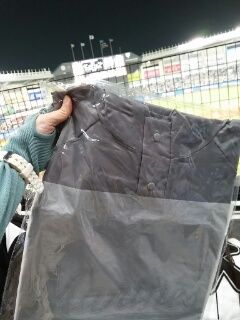 フリースポンチョと、日程カレンダー。カレンダーは、イベントの日とかも書いてあるので、会社のデスクにおいて、仕事と観戦の日程を決めるのに使っております。家にもあったら便利なのになぁ~と思ってたら、4/11の観戦でも無事にゲットできました。4/11は、ファンクラブデーでパッカブルブランケットももらえました。フリースもブランケットも寒い日の観戦にはぴったりのもの達なんだけど、その場でもらえて使うには良いんだけど、家から電車で会社に持って行って、さらに電車でマリンまで行って・・・には、小さく畳めるとはいえ、ちょっとかさばるのよねぇ…。今、通勤や会社では、ちょっと暑いくらいの日もあるし。まだマリンは寒いけども。マリンでロッカーを借りるほどでもないしねぇ。春と秋は、なかなかムズカシイのよねまぁ、楽しいから行っちゃうんですけども。今年はチームの雰囲気も良いし、野球が楽しい。4月はプラマイ0で終われたしね。(チーム的にも、自分の観戦成績的にも。)で。5/1のファンクラブデーでもこれもらった。レインポンチョ。なんて言ってる間に、ゴールデンなウィークがボロボロで、いつのまにか借金生活。負けが込んでくると笑顔でいられないのもわかるけど、ムズカシイ顔していれば勝てるってもんでもないでしょうよ。気合いを入れ直して頑張れ~っおのおのが、自分が必要とされている意味、自分のやるべきことをちゃんと考えてっ!!