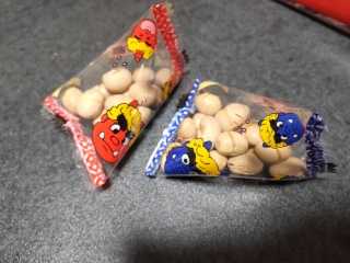 アキラ先輩があっという間に頬袋に恵方巻きを入れて、