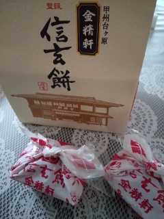 「お昼ご飯食べたところで、信玄餅発見して、おみやげ買っちゃったんだけどさ〜