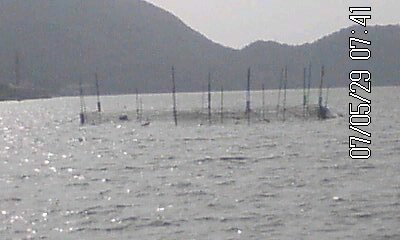 三連休 台風はこちら (岡山)は たいして 被害はなく よかった。です。 私のメル友は 「なぁ~~~んだ。台風で よく雨 降るんだ」って のんきなもんです。 以前の写真ですが 今日も 市場が 休みなので 昨日は 新しく 網をしかけてません。 残りの網の中に 今日は 鮎で いっぱい ここ岡山ひなせでは あゆを 食べる人が ほとんどなく 本当は いらない魚です。 川魚は 食べないので (海で 獲れた 鮎でも・・・) 知り合いの 兵庫赤穂の 魚屋さんに いる?って 聞いても やっぱり あまり 売れないらしいです。 昨日と あわして100匹前後 焼いて 甘露煮にでも しようかな? 今なら あげますよ・・・・・・・ ※ 今日は 海の日 今初めて テレビで 知りました。