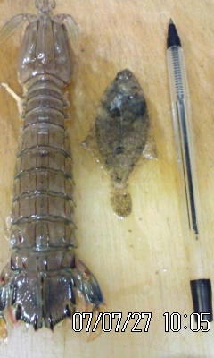 おはよう!! いつものように 海へ・・・・ いつもの 夜明けの時間が 少し 薄暗く 前方には いなびかり? 島の南側の空が 赤い? いなびかり?? 雪・雨なら 平気ですが・・・・・ 海の上での雷って ちょっと・・・・・ 雷に 打たれた事が ないので・・・ (当然 陸上でも・・・ 船って 落雷 するのでしょうか?) 当然 夕立のごとく 雨!雨!雨!! 朝だからって 立つ 付けたら 大変 まずいので・・・・・・ ここ瀬戸内にも 週末には 台風が 来そうですから・・・・ 上の画像のように 網は 仕掛けて あるのですが・・・ 風 潮の 強い場所は 下の画像のように 網を 引き上げ なければ なりません。 昨日 今日 漁の合間に 上げました。 結構 重労働ですよ。・・・・・・ 100~150m位の網 細かい 処は 撮ってないので・・・・・・・・ これは イザリウオです。 以前の画像ですが・・・・・ 今日は 夕立のごとくの 雨で カメラの 方が 大事ですから・・・・ めずらしい魚です。多分 ムラビレで 歩くように・・・・ エラから 勢いよく?水を 噴射 して 歩いてます。