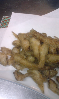 夏の ビールの お供は・・・ ひなせでは 石持ちの 唐揚げです。 カラッと 2度揚げ 塩コショウで いただきます。 酢に漬けて 南蛮酢 もいいです。 これは 頭を 取った 画像です。 頭に 石? 固いものが あり 食べられないので 頭を 取って 唐揚げに します。 他に そのまま ミンチして つくね? だんごにして 吸い物 鍋 唐揚げでも いいです。