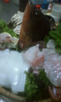 夏の 魚と言われるアコウお客様に 食べて いただきました。 まずは活き造り これは 片身です。もう 片身は。。。。。鍋でえびバター 次に 穴子バター焼きを食す!! その鍋に ダシ野菜 アラ 投入!! で!!これが 本命の アコウの しゃぶしゃぶ!!お客様の ご厚意で撮影 させて もらいました。 間違いなく おいしいよ。