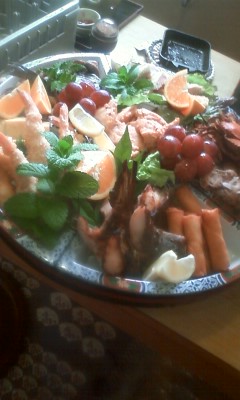 いりやきとは。。。。日生の郷土料理です。わかりやすく 言えばサワラの しゃぶすき のような 感じです。甘辛い たれを 煮詰めさわらの切り身をしゃぶしゃぶ して 食べるものです。先日 自宅で 食べました。 野菜は たまねぎ なすび などが 基本です。今回は すき焼きのたれ 使用しました。具材は 家なのでもんごいか・はも・さわらです。買うと 高くつくのでもらい物の鰆モンゴ ハモは 海で 獲った物です。 温まったところにサワラを しゃぶしゃぶ!!火加減は お好みで。。。。 次は はもやっぱり しゃぶしゃぶいかも しゃぶしゃぶ。。。。。 たいへんおいしい 郷土料理です。
