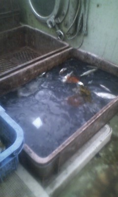 今日も 朝から 蒸し暑いです。 漁に 出ると カッパを 着ます。正直 明るくなるにつれてサウナ状態です。 本当に カッパを 着ての力仕事は 大変です。 クラゲが 網に 多く入るとあげるだけで くたくたです。(人力ですから)一度の 網で これでけの くらげなら まだ いい方です。多い時は 3箱~5箱 今朝は 風が 強く 大きな雲が 石持ち モンゴ だいちょうひらめ たこ など。。。