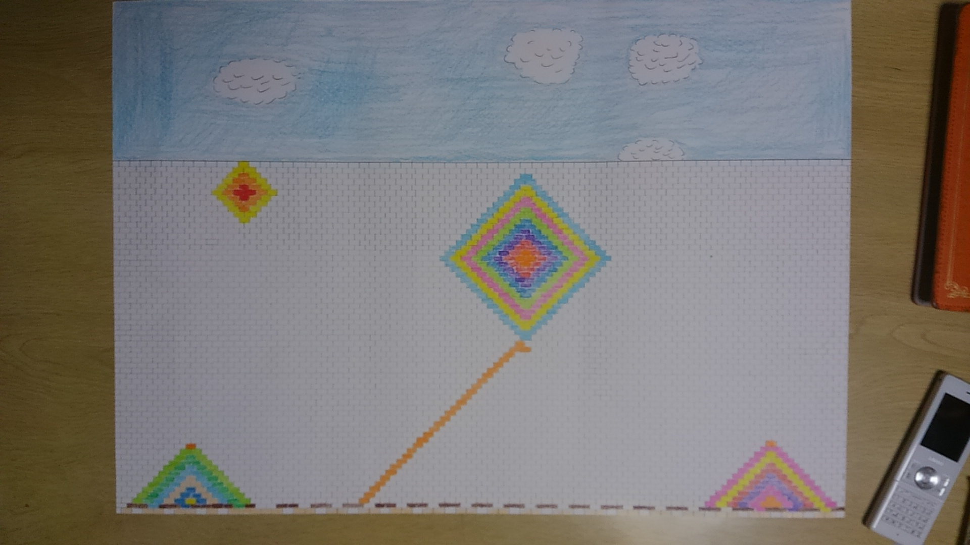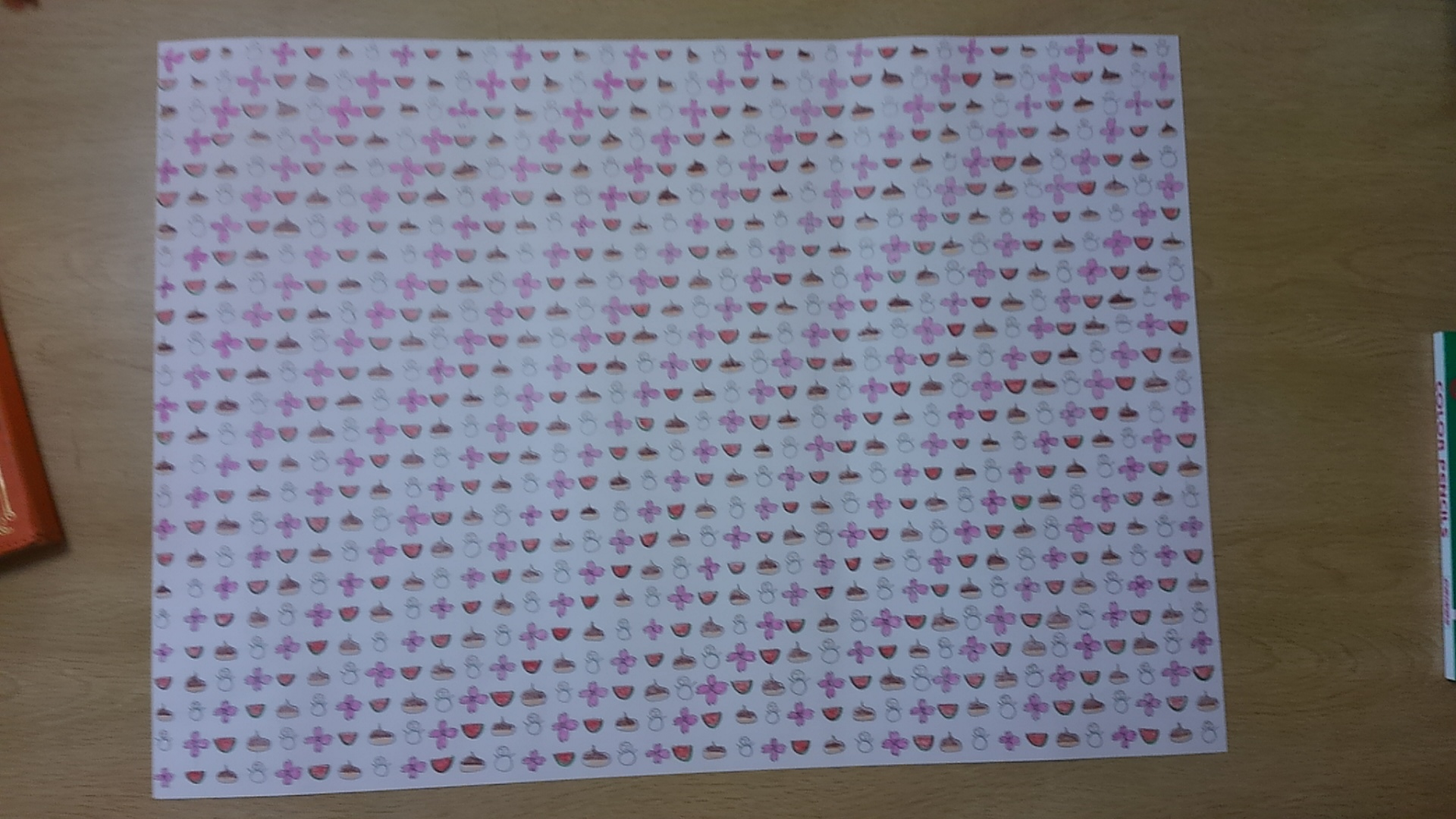 某デパートの包装紙デザインコンテストに応募した作品春夏秋冬です縦からでも横からでも春夏秋冬のイラスト春は桜 夏はスイカ 秋は 栗 冬は雪ダルマのイラストが並んでる作品です。