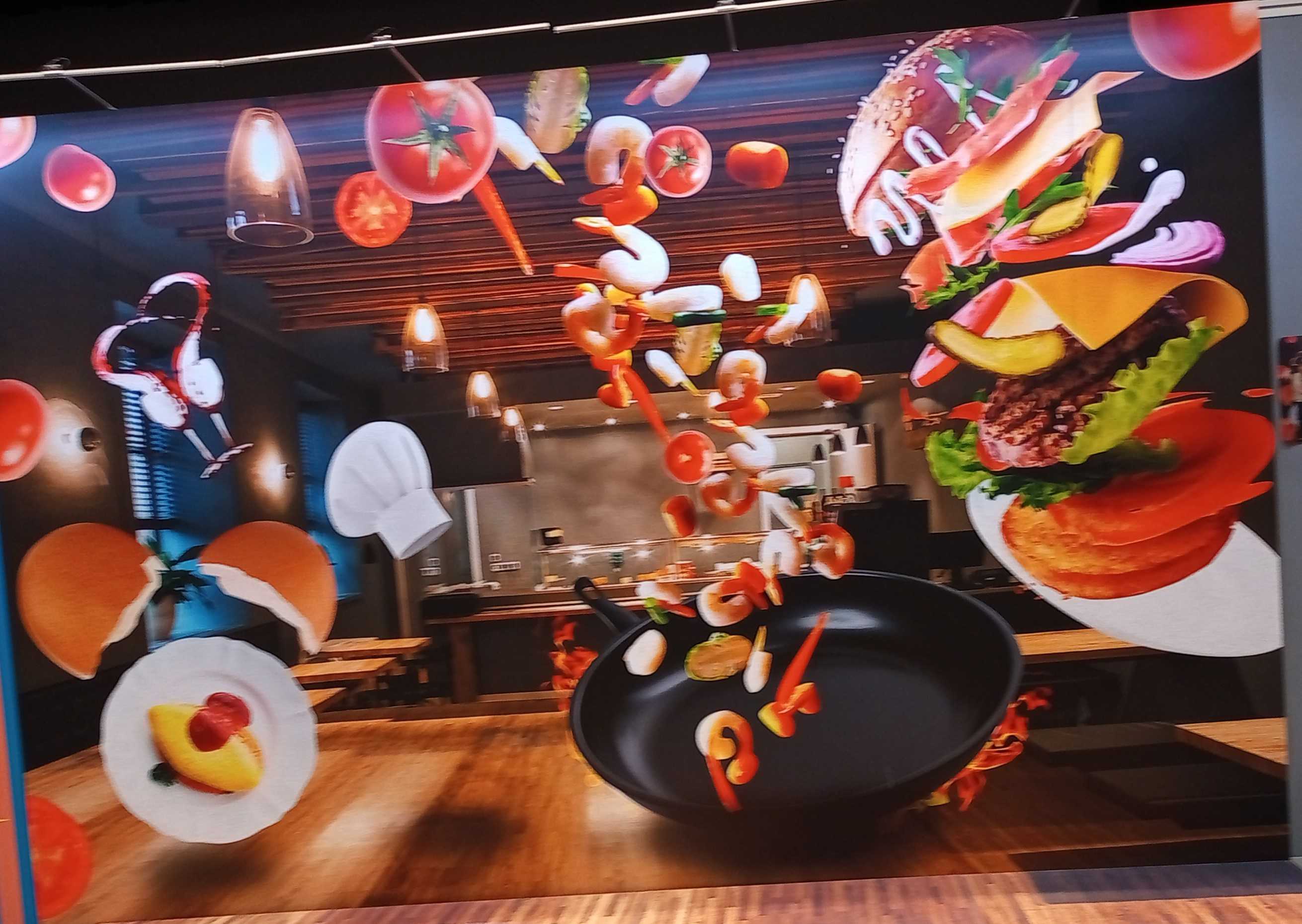 画像をよく見てください飛んでるようで飛んでないです。堺の地場産業振興会館で開催してるイベントの中にある写真撮影用の舞台のバックなんです、食べ物が飛んでるように見えますね。