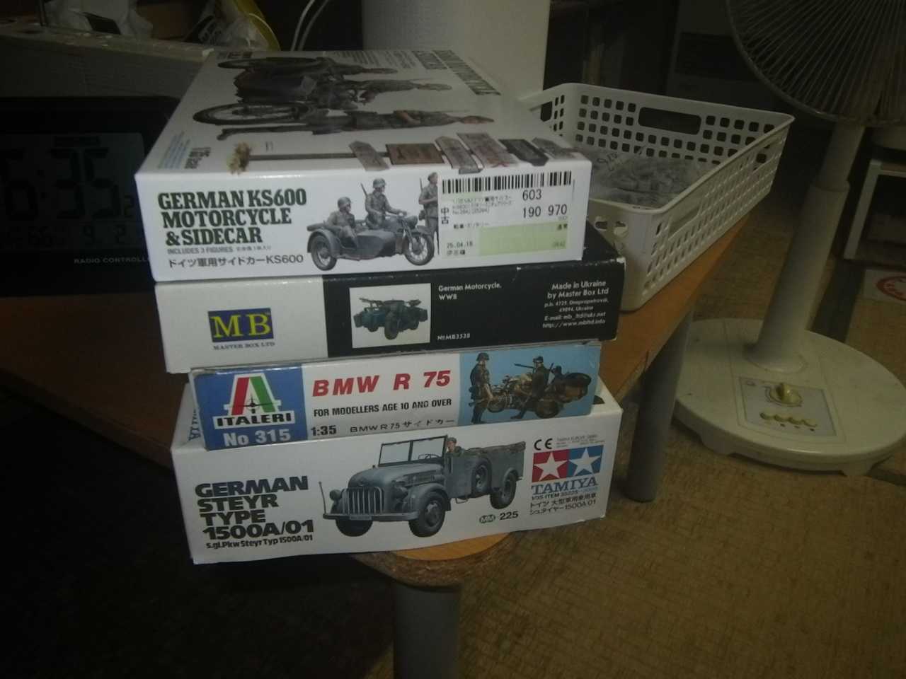 駿河屋の通販で新規購入しましたタミヤ製 1/35 ドイツ大型軍用乗用車シュタイヤー1500A/01レジン製積荷と合わせますタミヤ製 1/35 MM ドイツ軍用サイドカー KS600レジン製兵士と合わせますイタレリ製 1/35 BMW R75 SIDECAR -BMW R75 サイドカー-レジン製積荷と合わせますマスターボックス製 1/35 独・BMW-R75軍用サイドカーレジン製兵士と合わせます