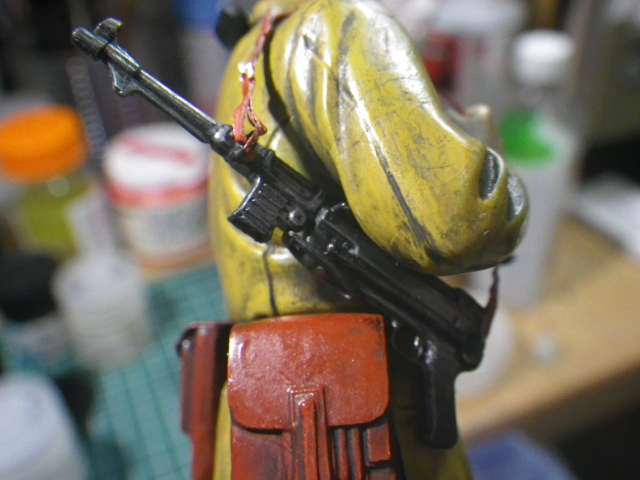 MP40短機関銃は弾倉を外して手に持って肩掛けしているようにしました。