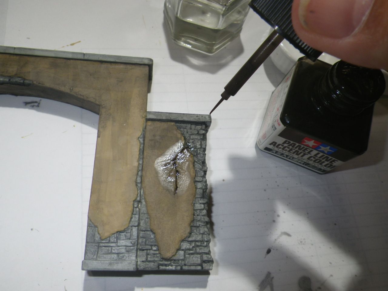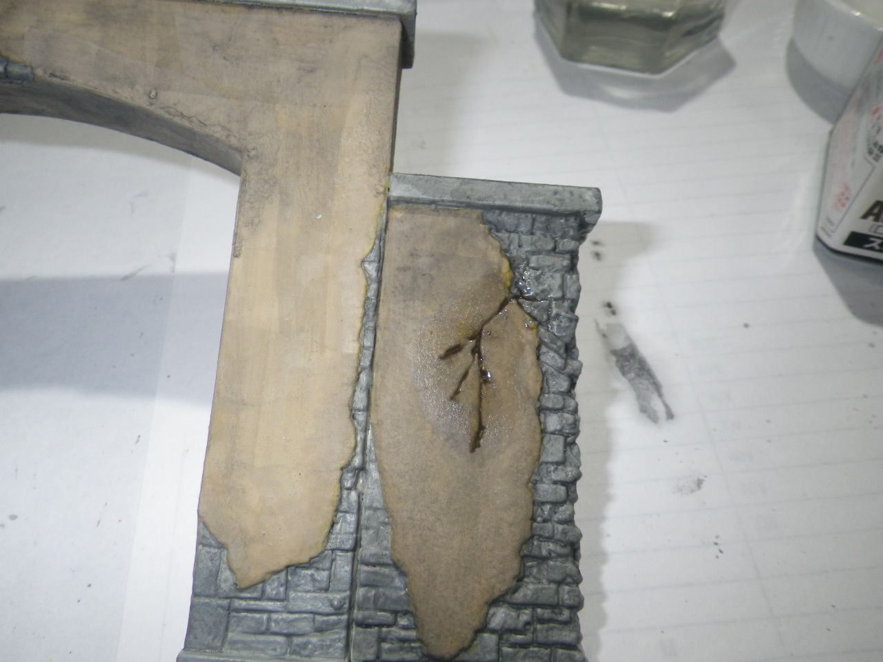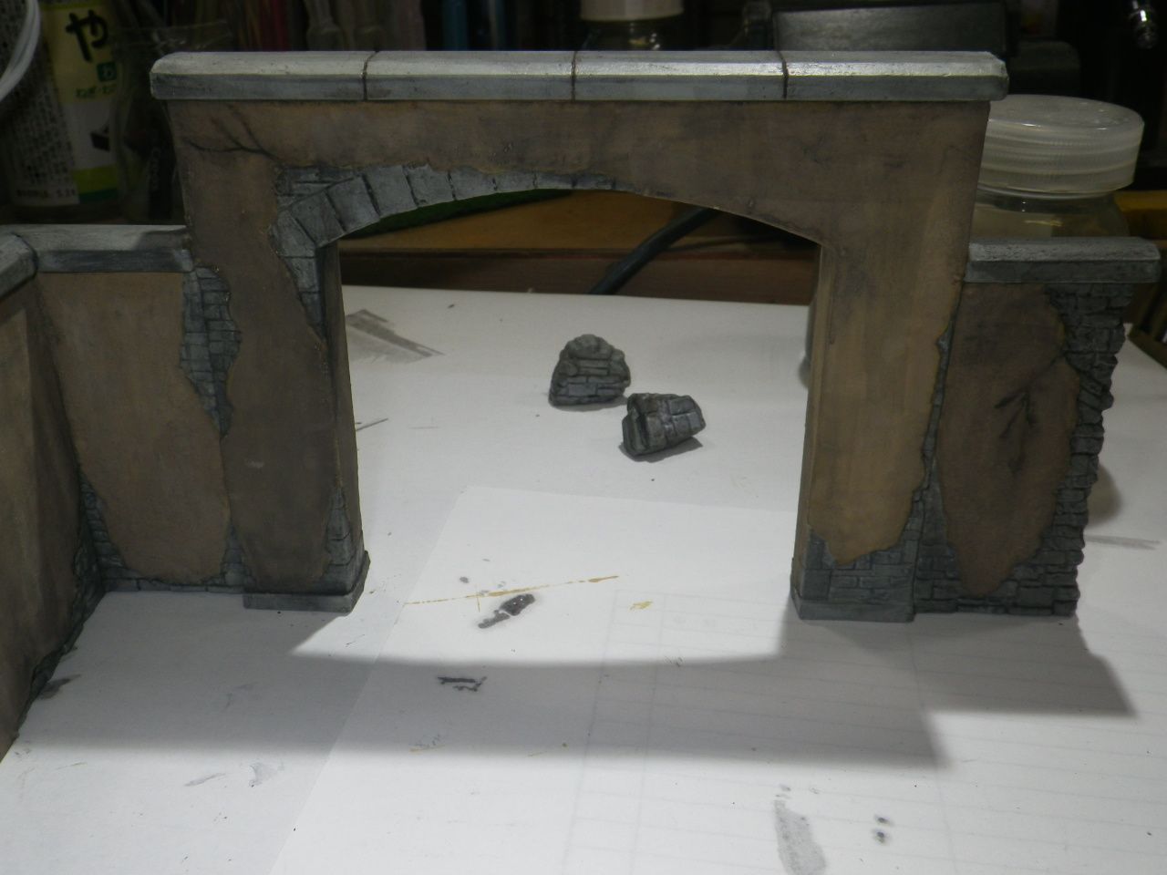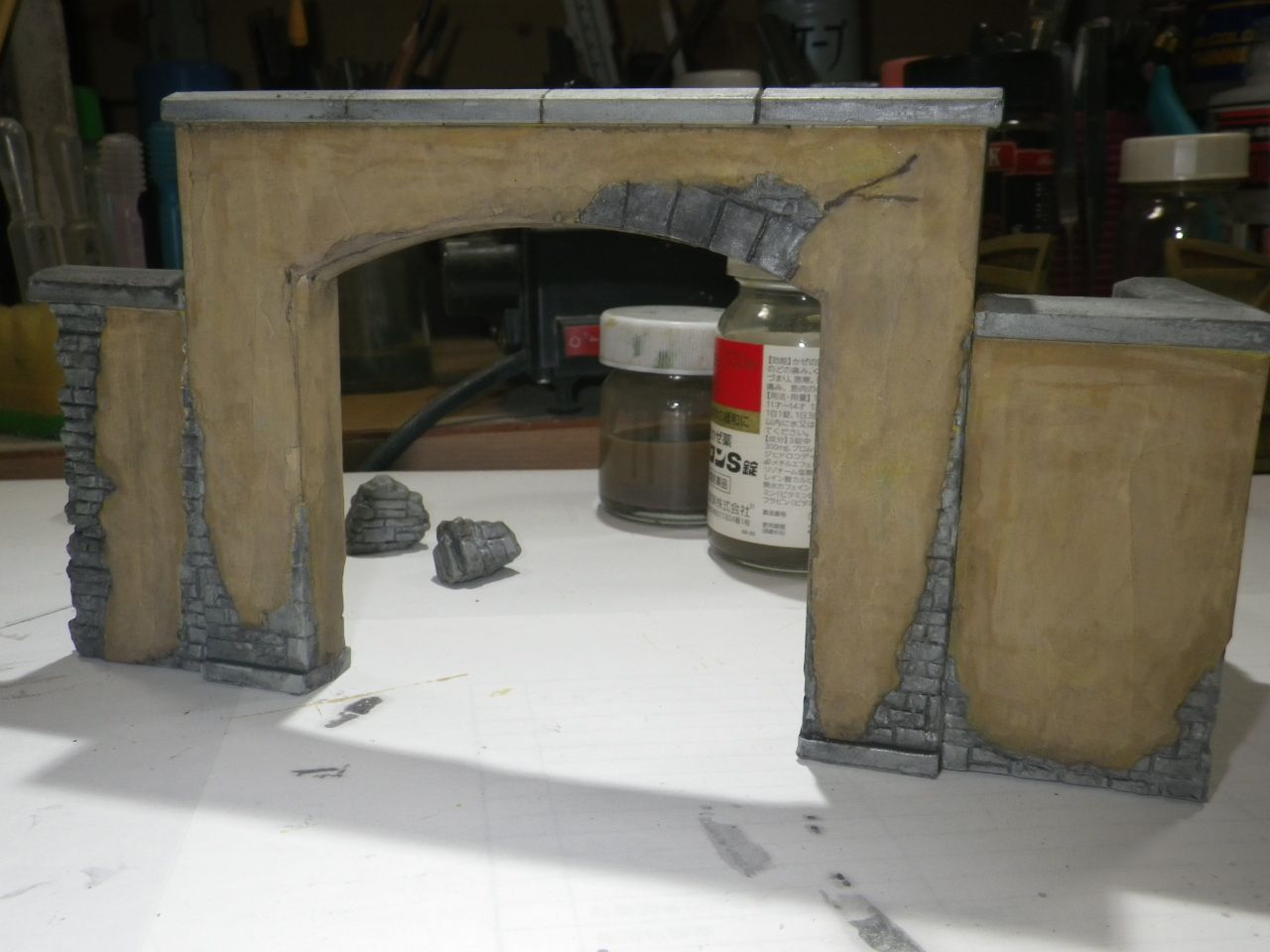 撮影を忘れて作業が進んでしまいましたが全体を墨入れブラックを希釈させた塗料でで全体を覆っています。表面がざらついているので塗布顔料は吸い込まれます、余剰塗料除去はできません。