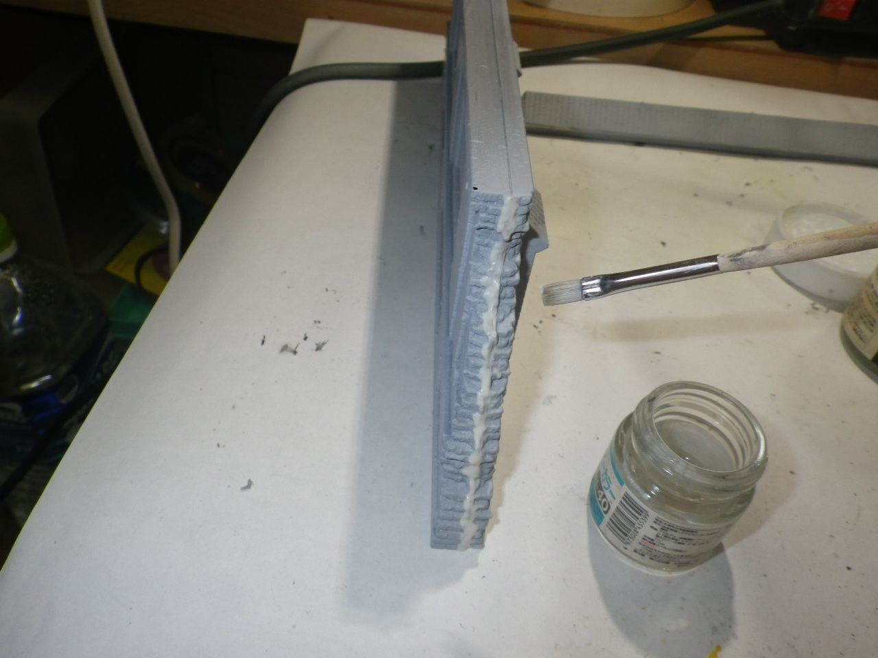 崩れたレンガ肌継目の盛りパテを崩れ成形に溶剤で馴染ませています