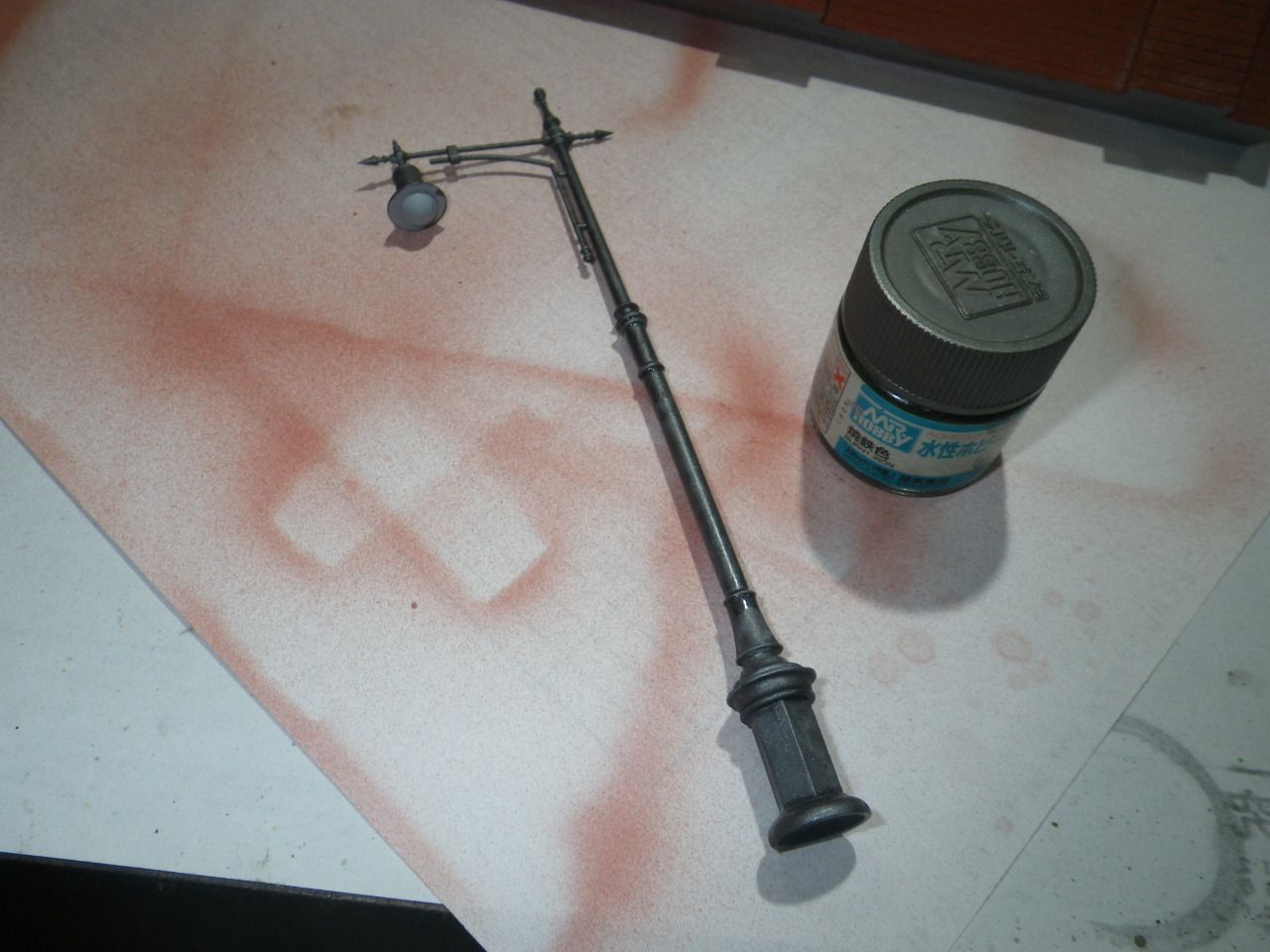 外灯の支柱を焼き鉄色で塗装しました。