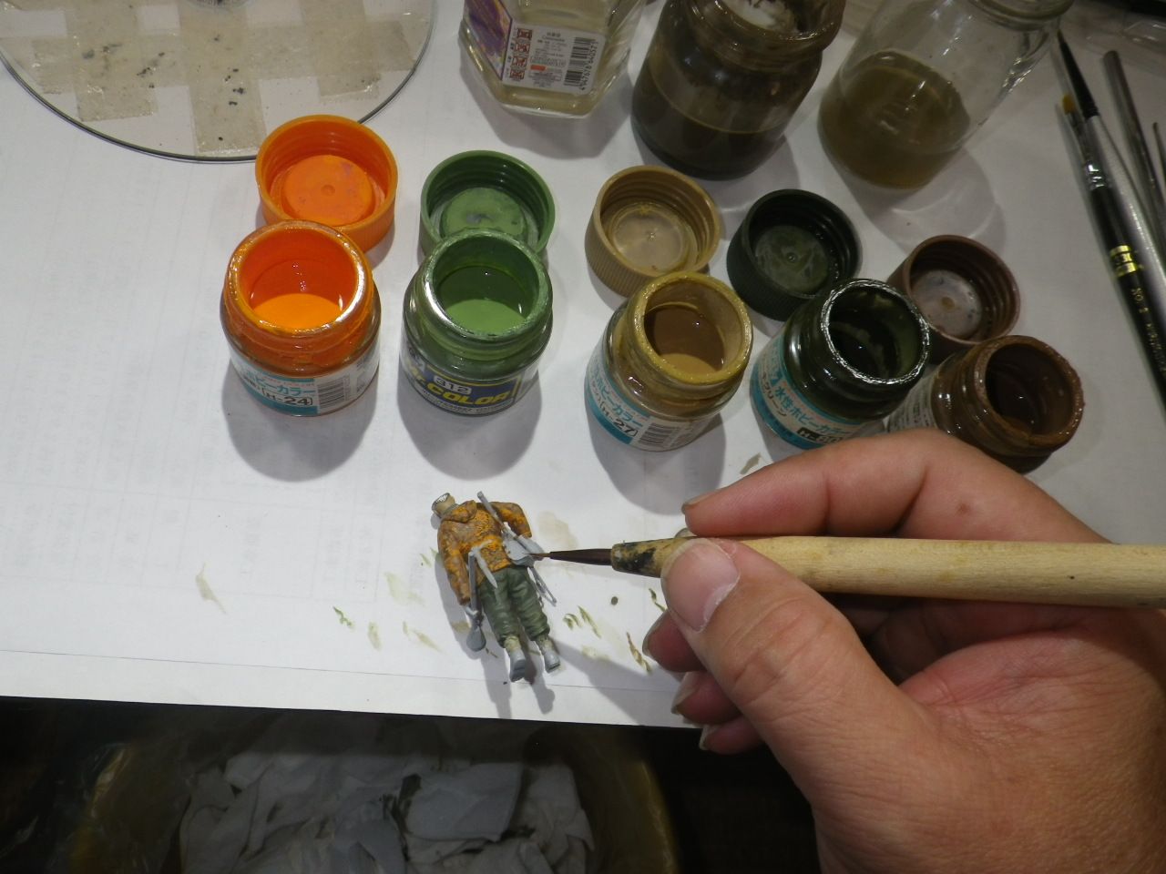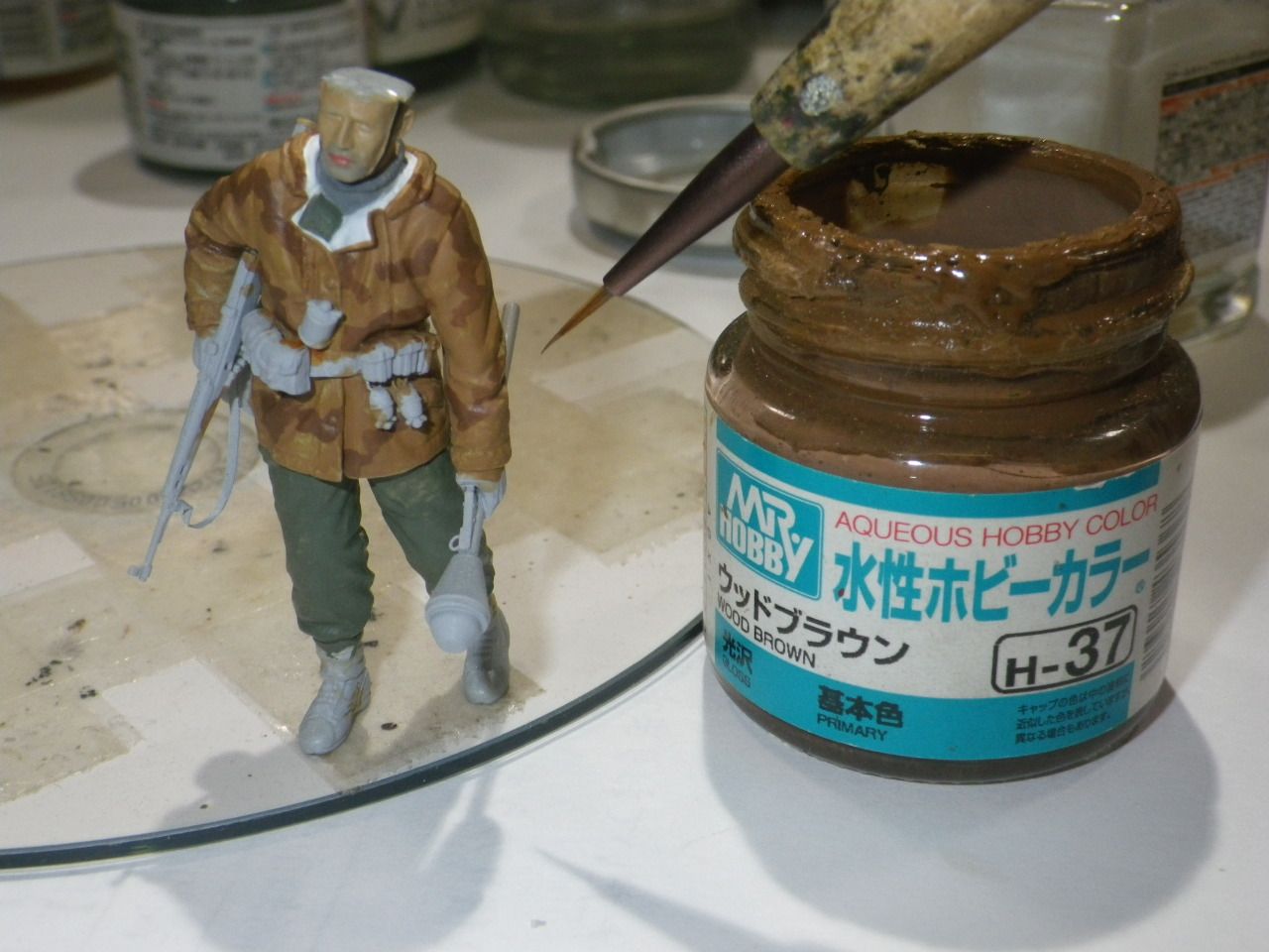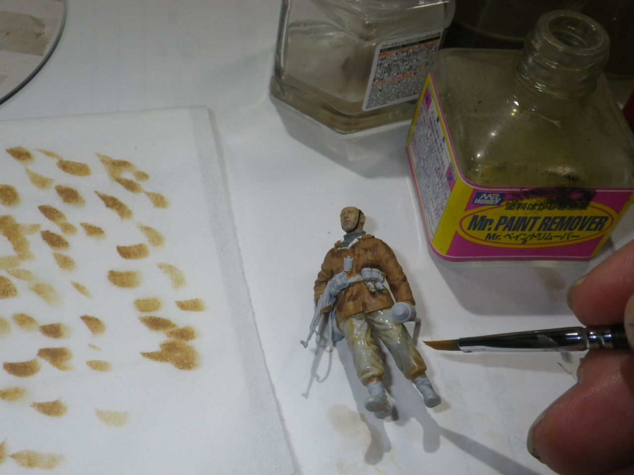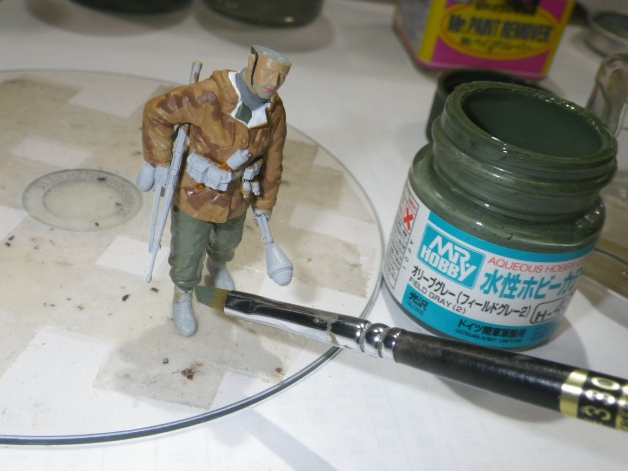 防寒スモック兵の迷彩柄塗装を行います。