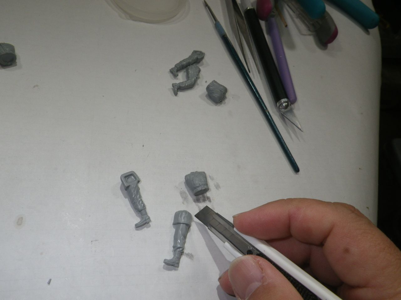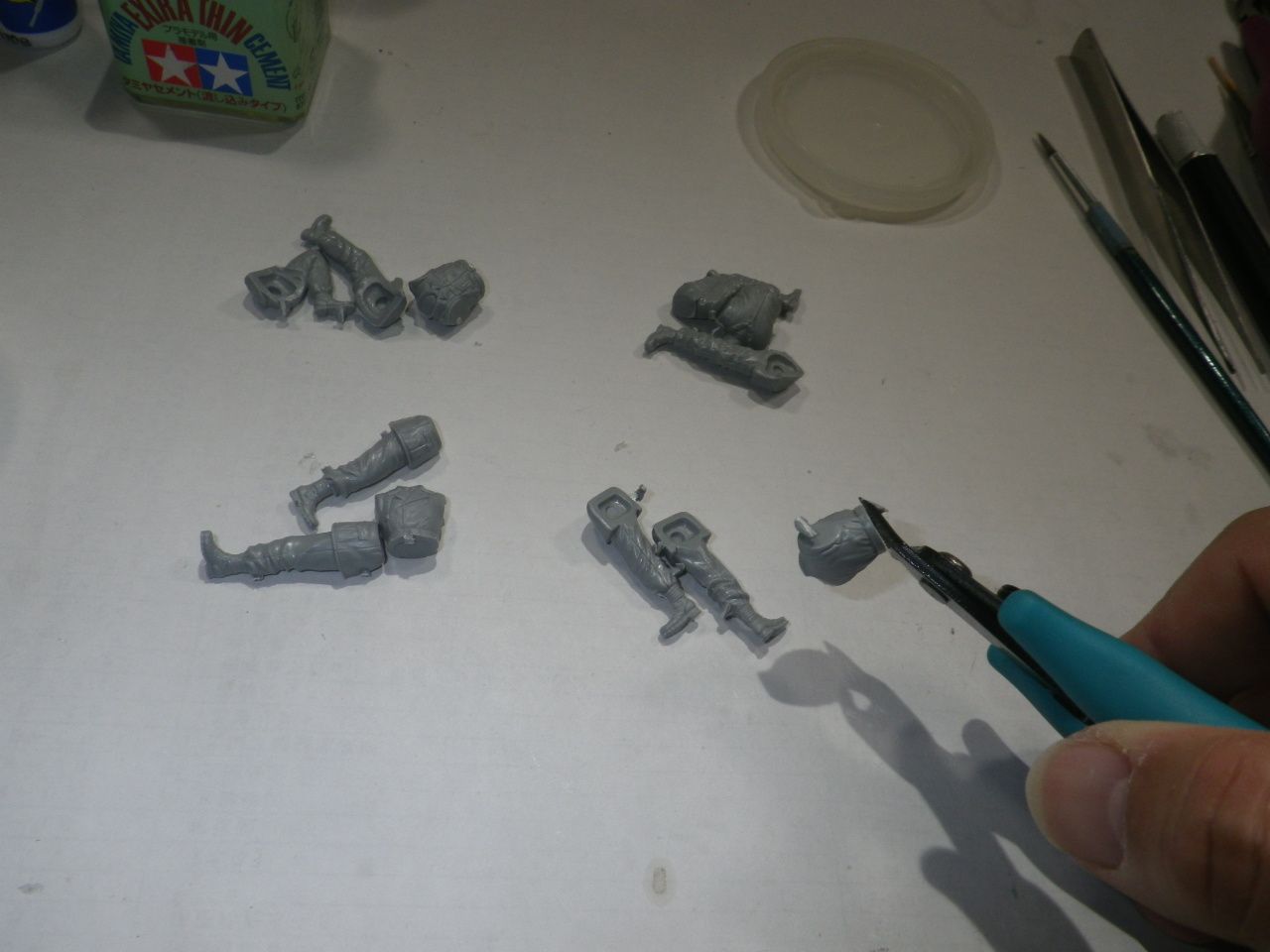 ゲート跡、継目段差をカッターナイフで削ぎ切り、