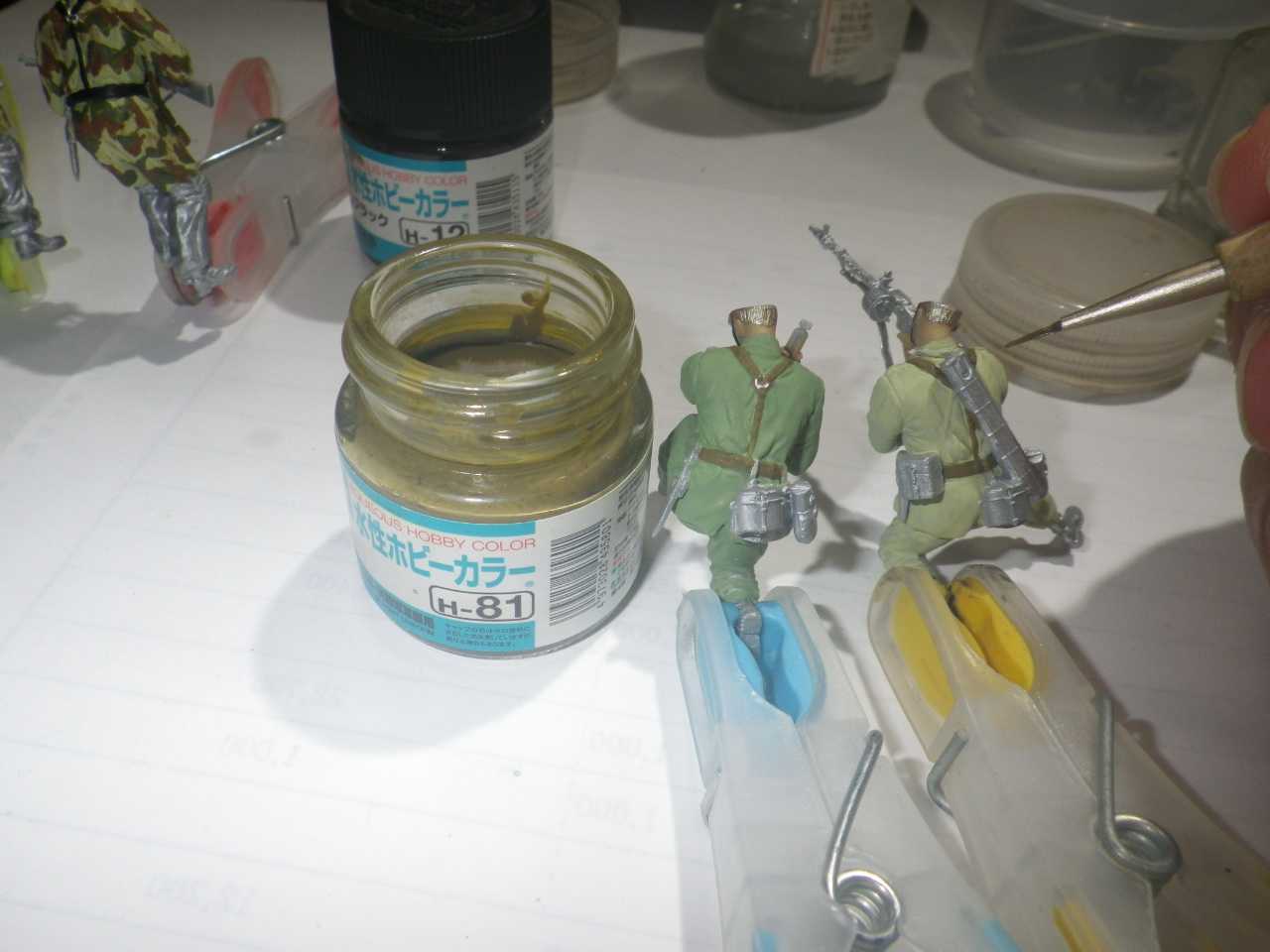 水性ホビーカラー H81 カーキでベルト・Yストラップを塗ります