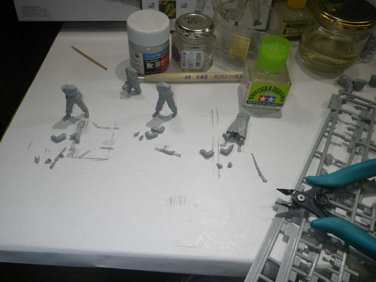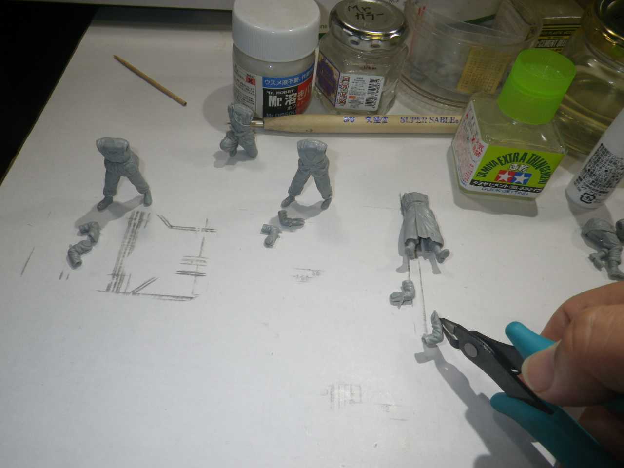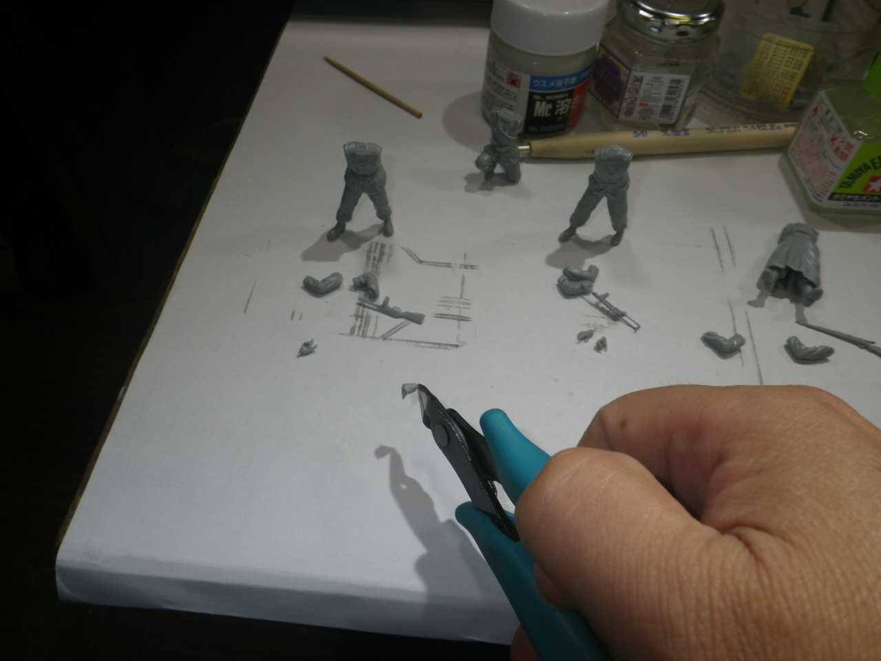 手の部品も切出し、合わせる銃器も各兵士に置きました