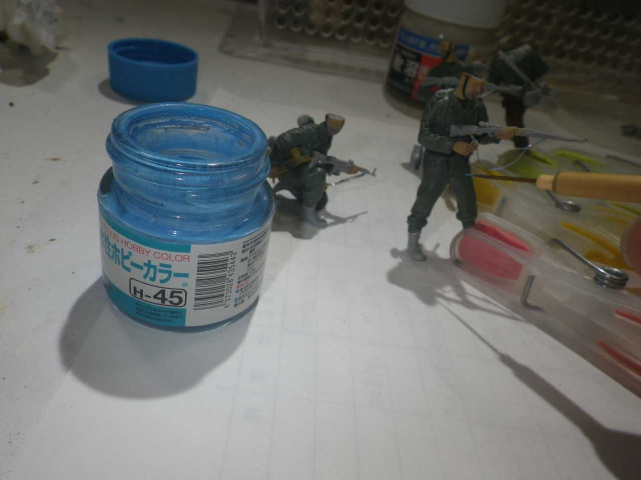 水性ホビーカラー H-45 みず色で安全キャップの遅延信管4.5秒の識別色を塗ります