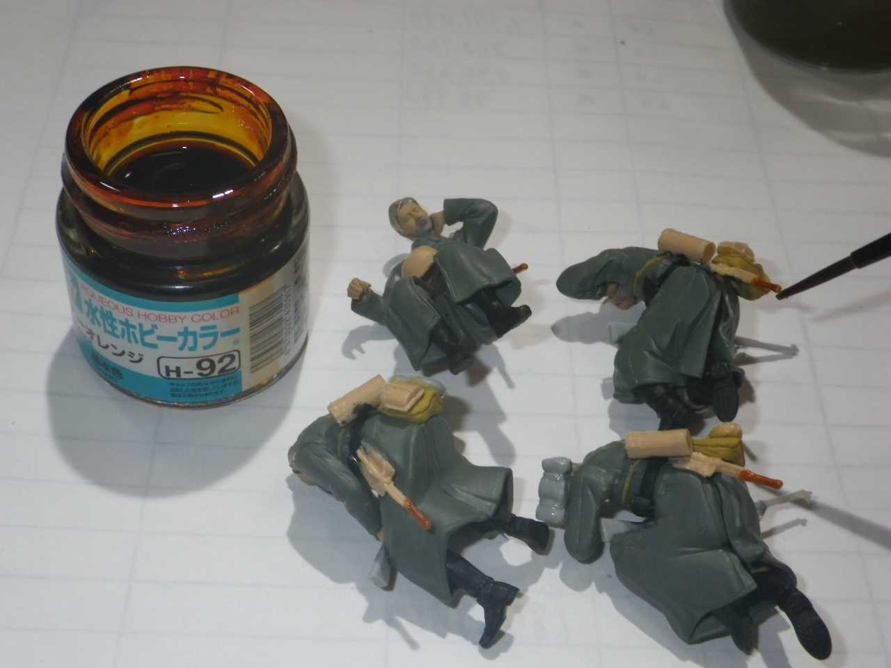水性ホビーカラー H92 クリアー オレンジでニス仕上げ重ね塗りします