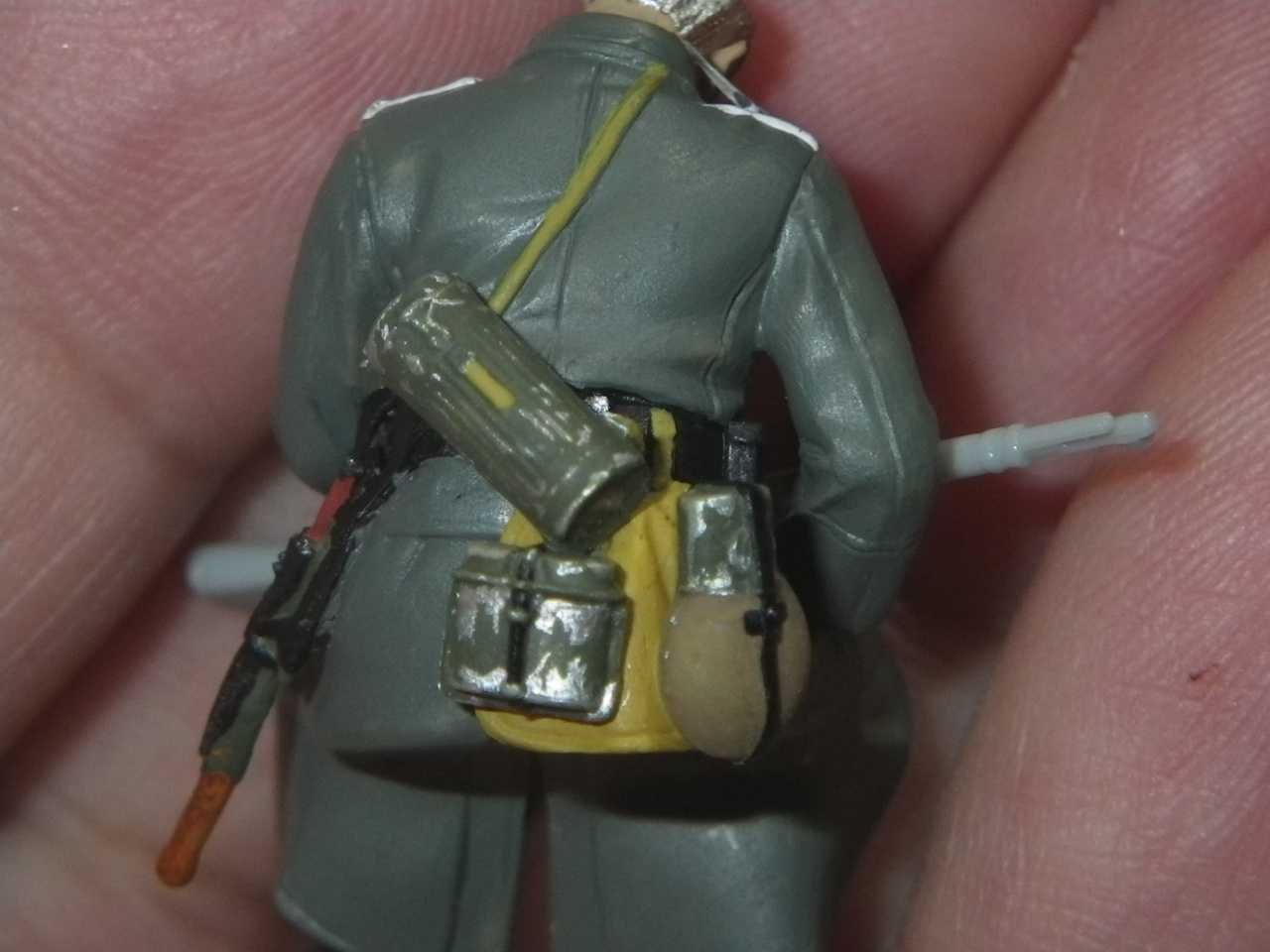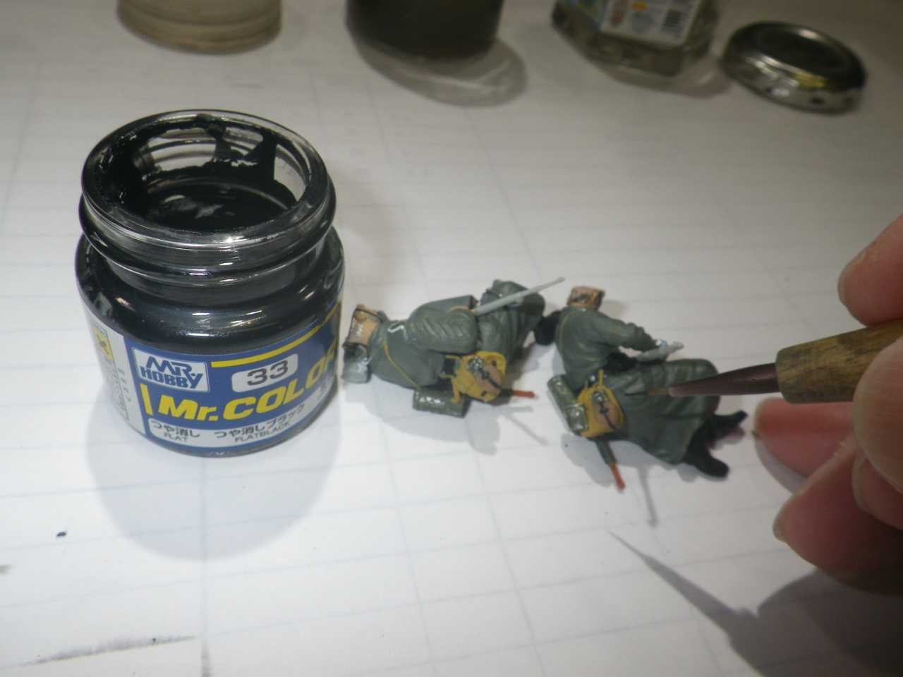 水性ホビーカラー H71 ミドルストーンでガスマスクケースのラッチベルトを塗ります