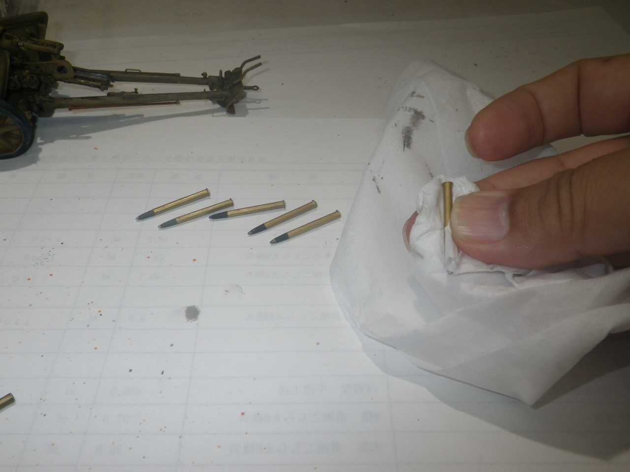 弾頭付き薬莢はティッシュペーパー磨きします