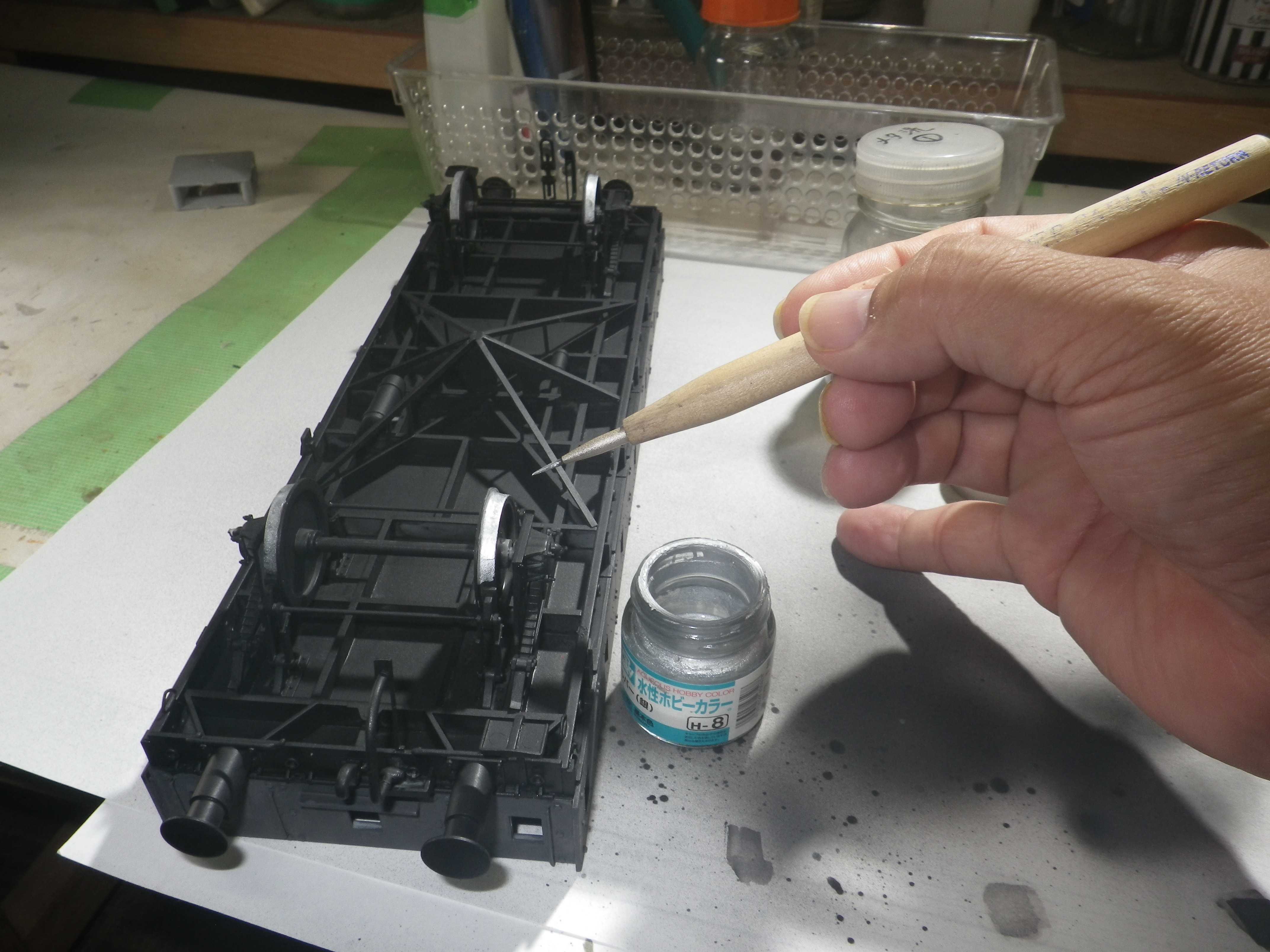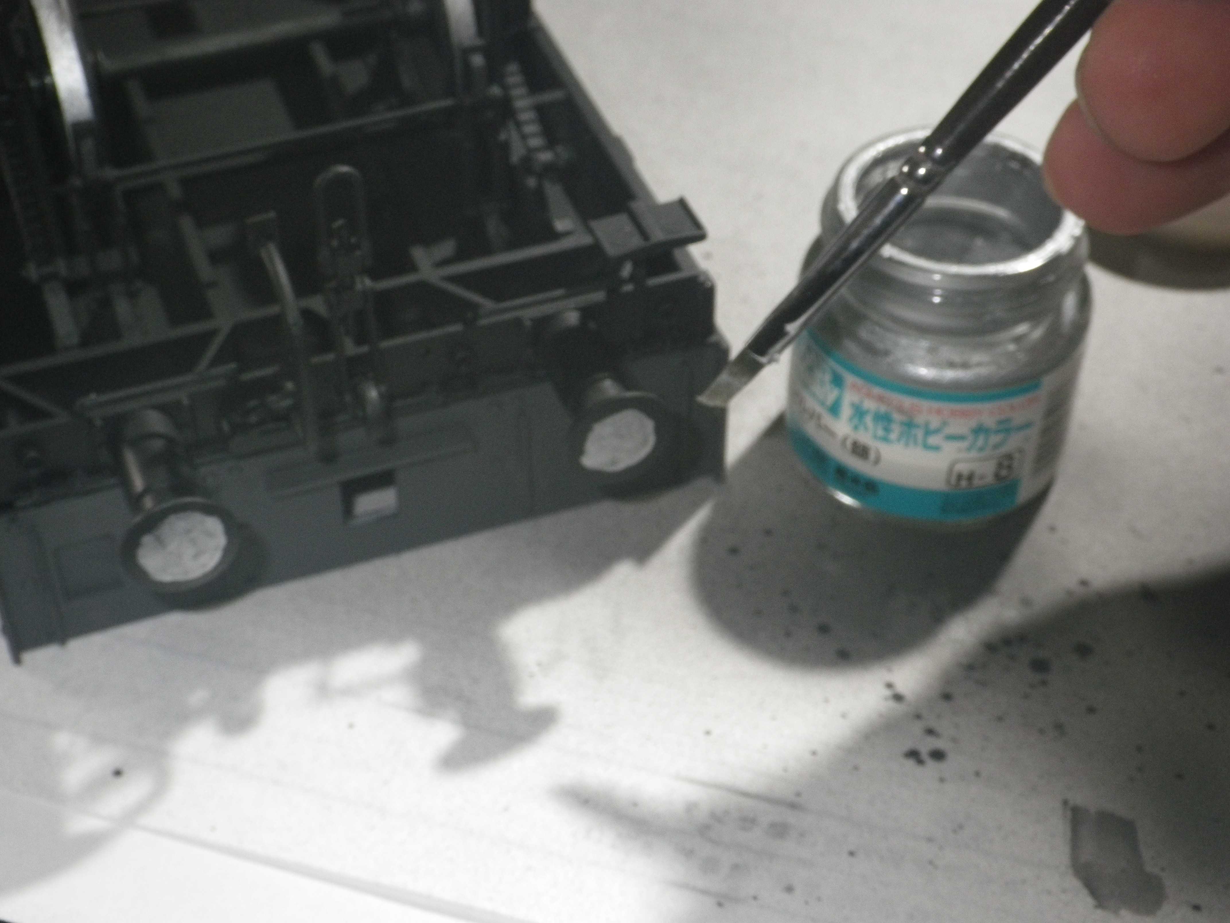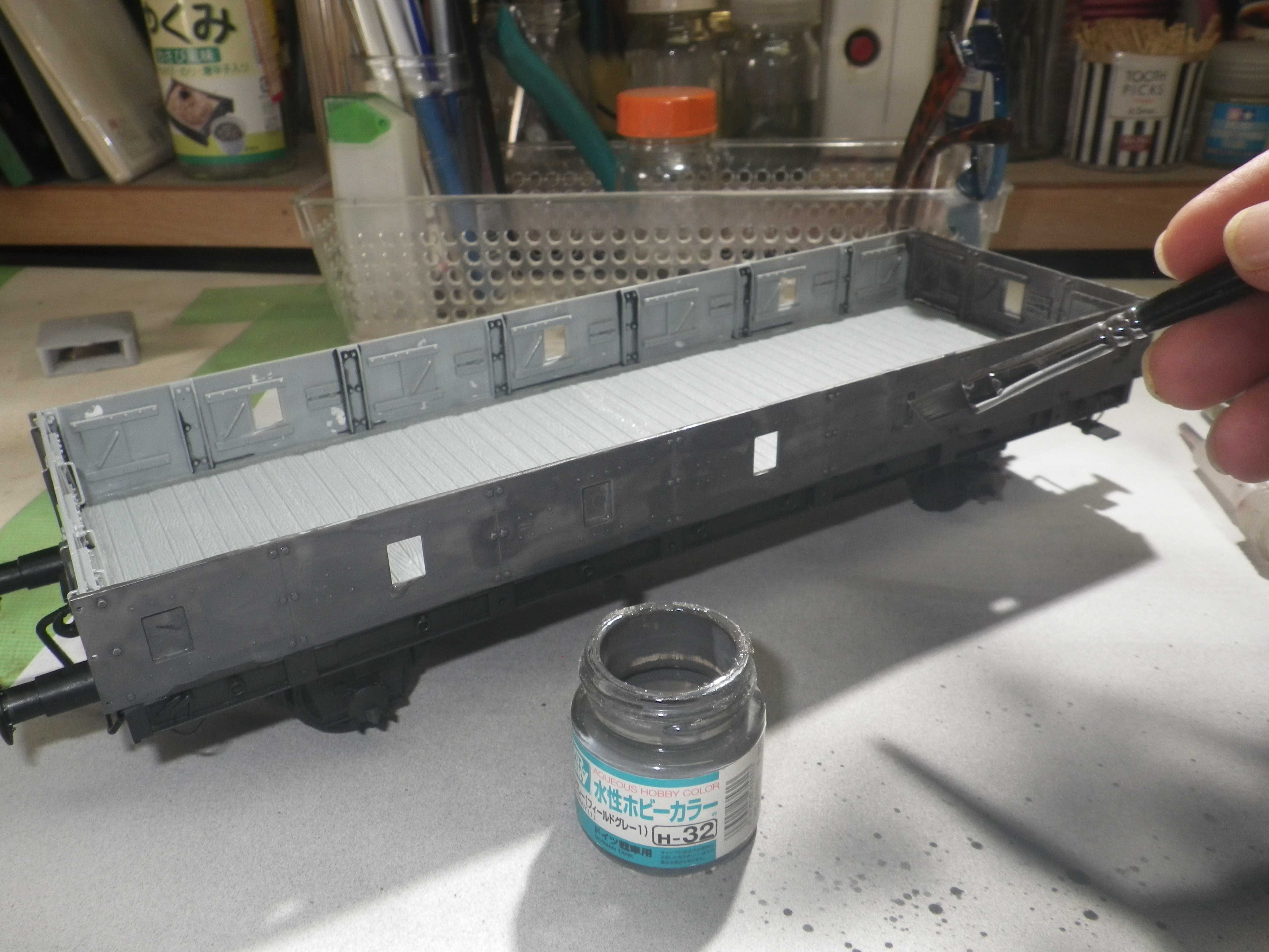 水性ホビーカラー H32 ダークグレーで側板外部を塗ります