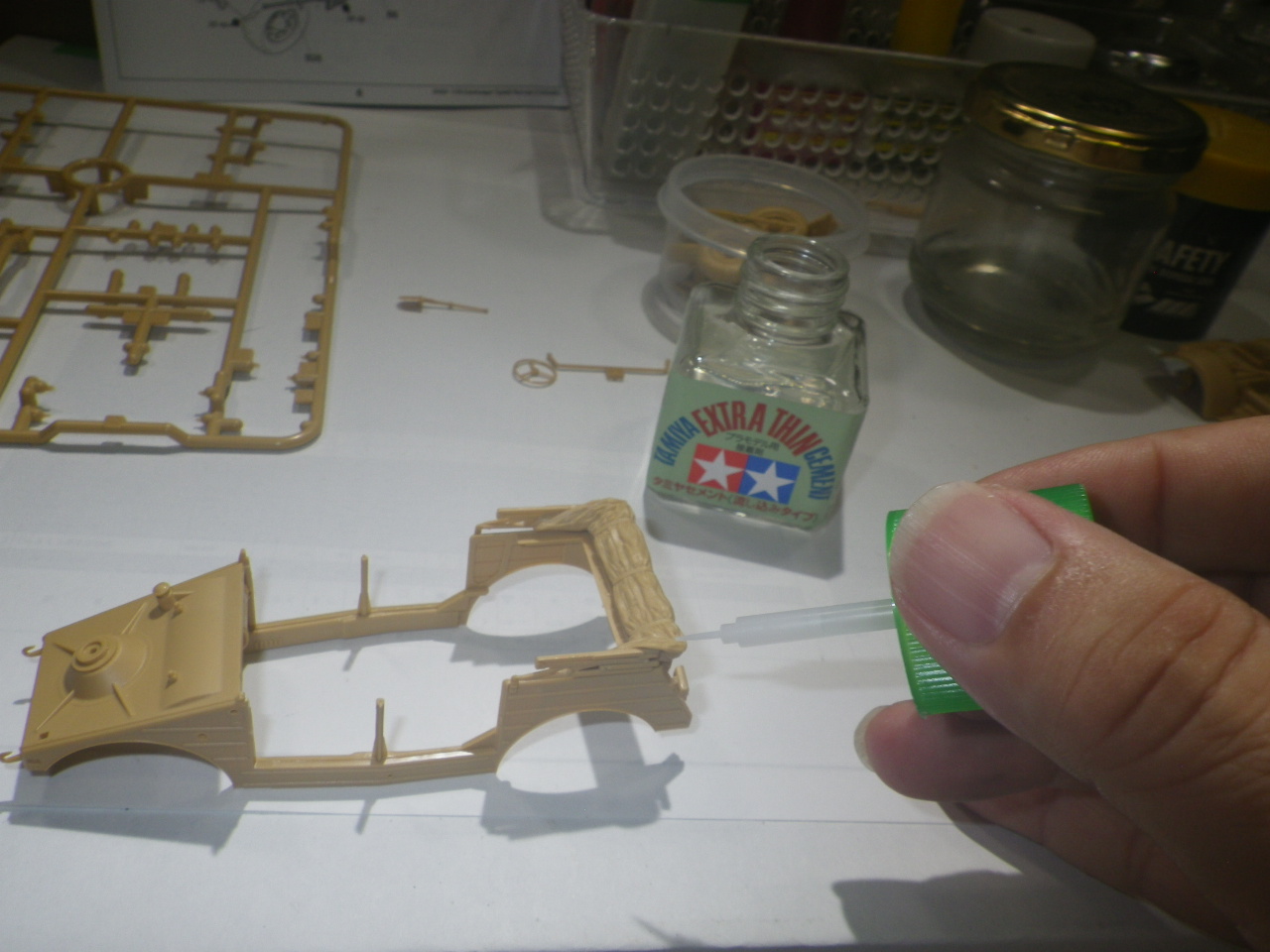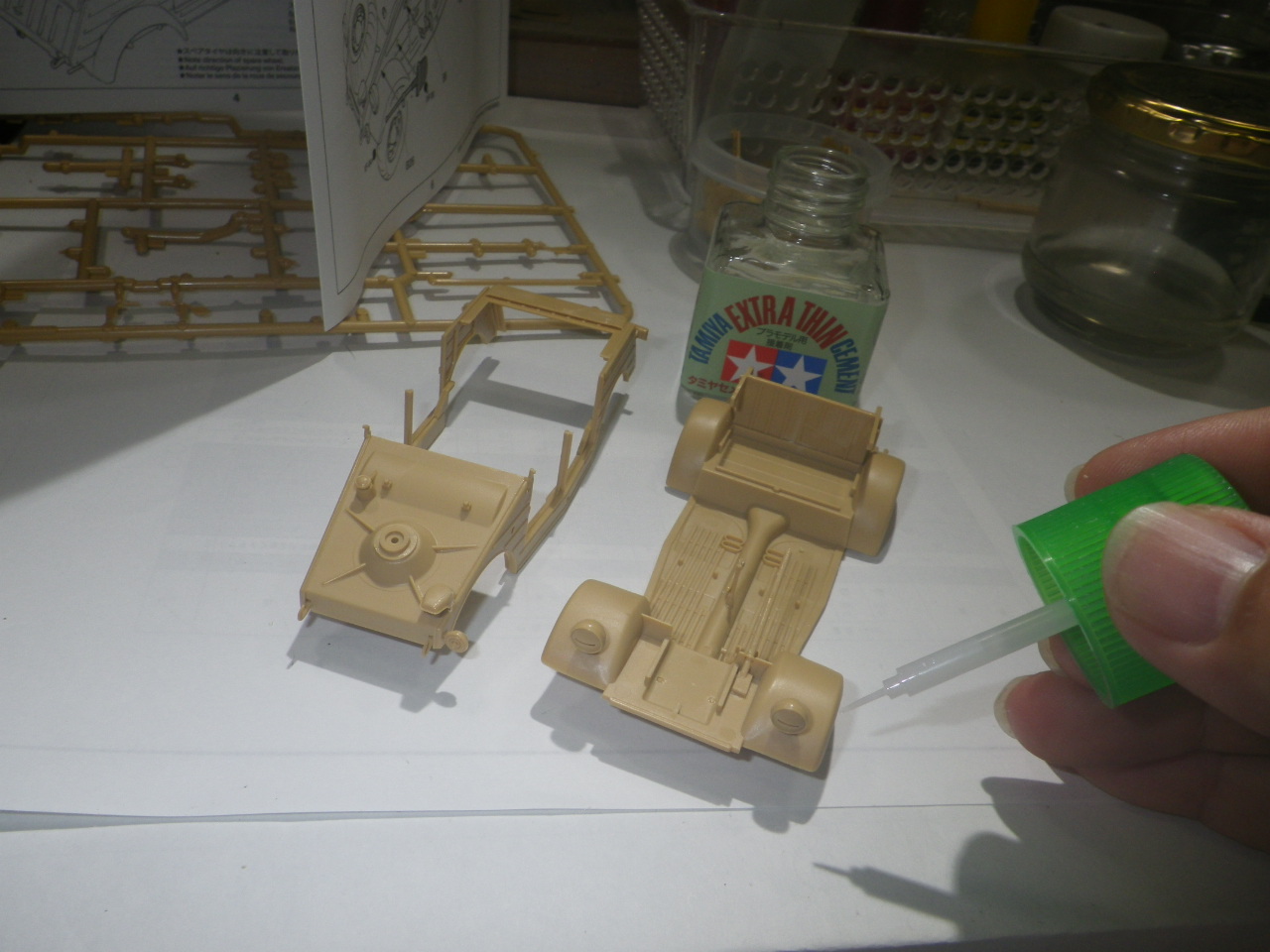 幌とフレームを合わせて車体に仮組みして位置調整します