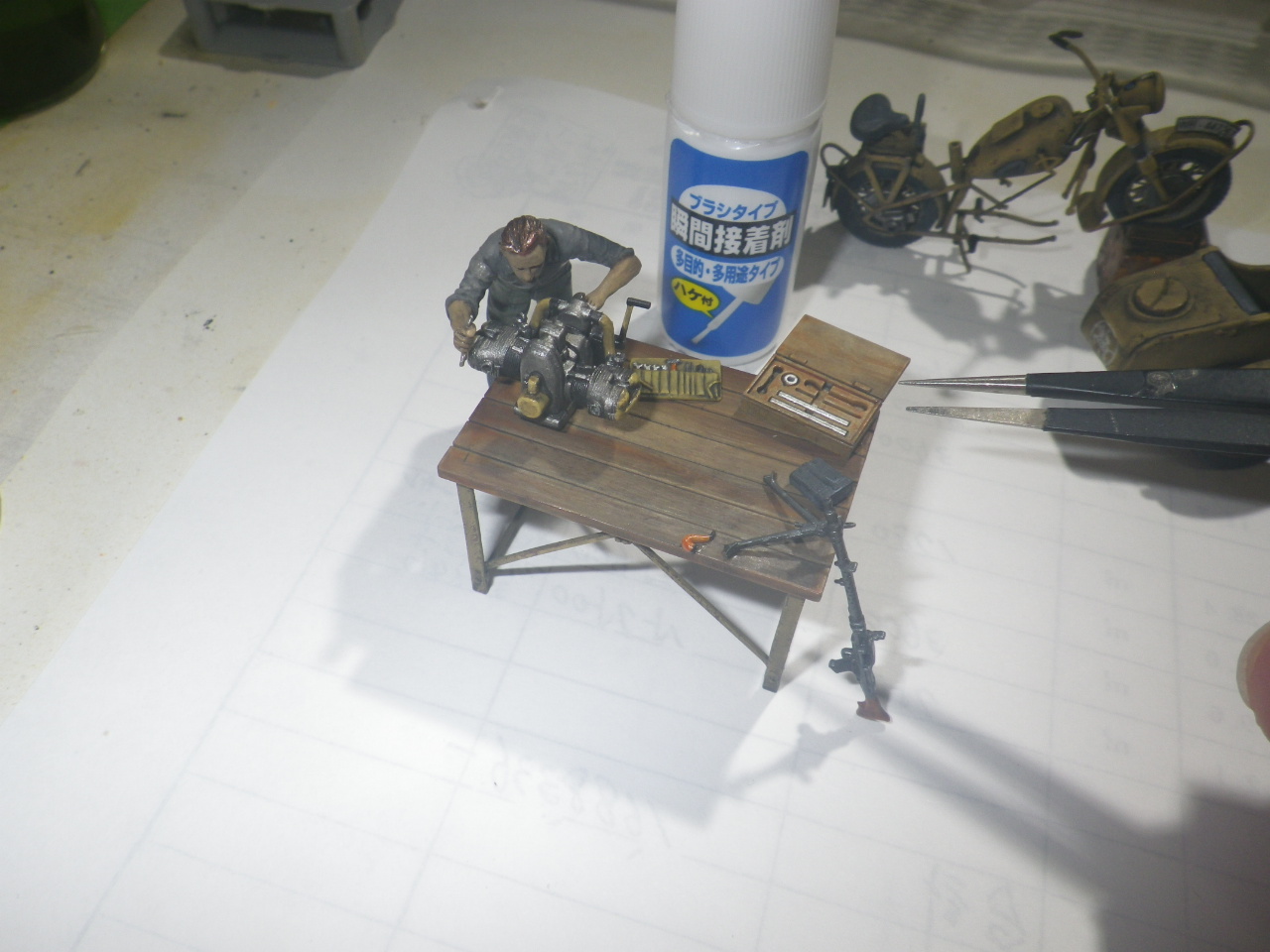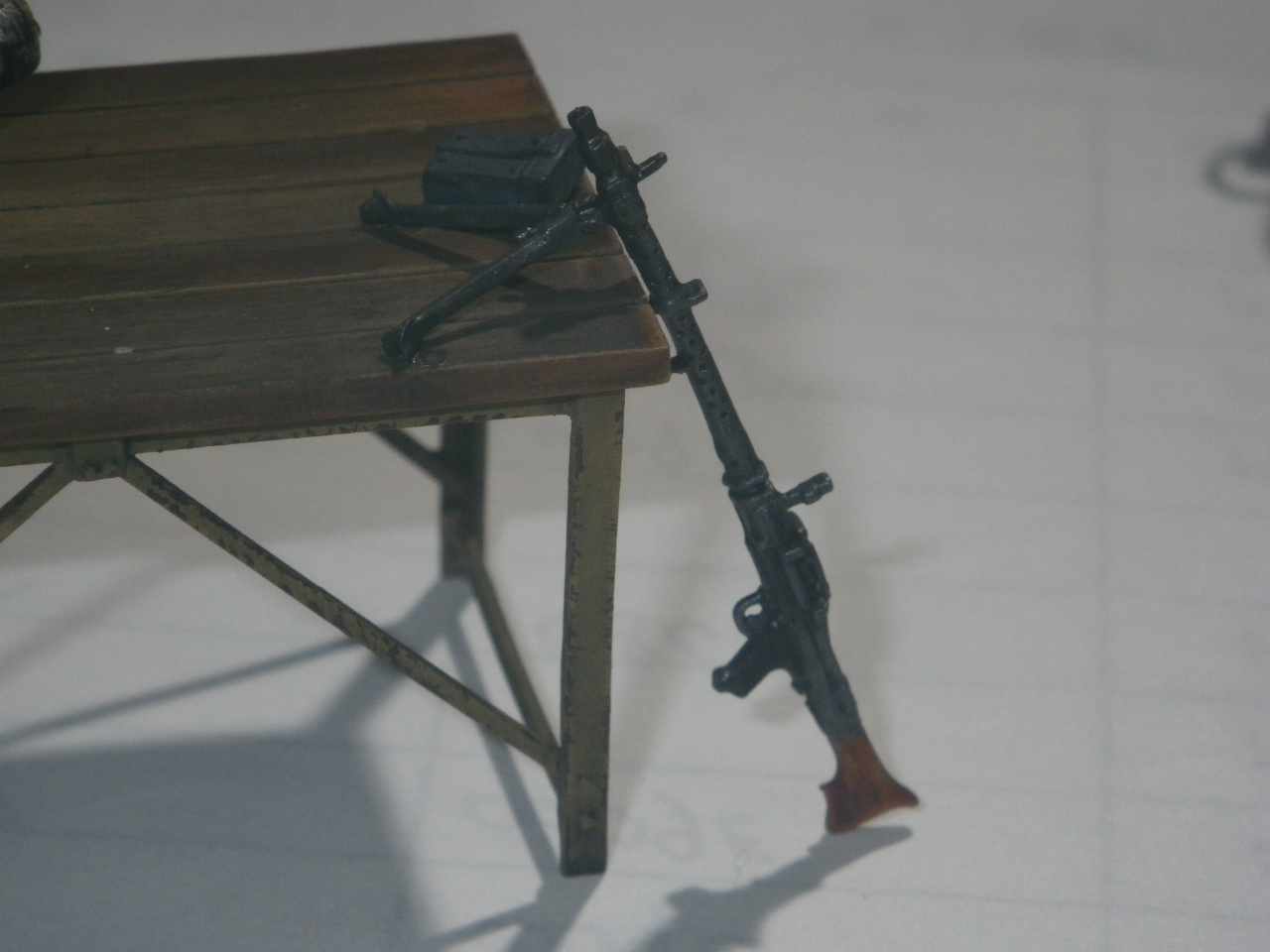 車載機関銃はパイボット開脚で台に立掛け、工具パウチは台上に置きます
