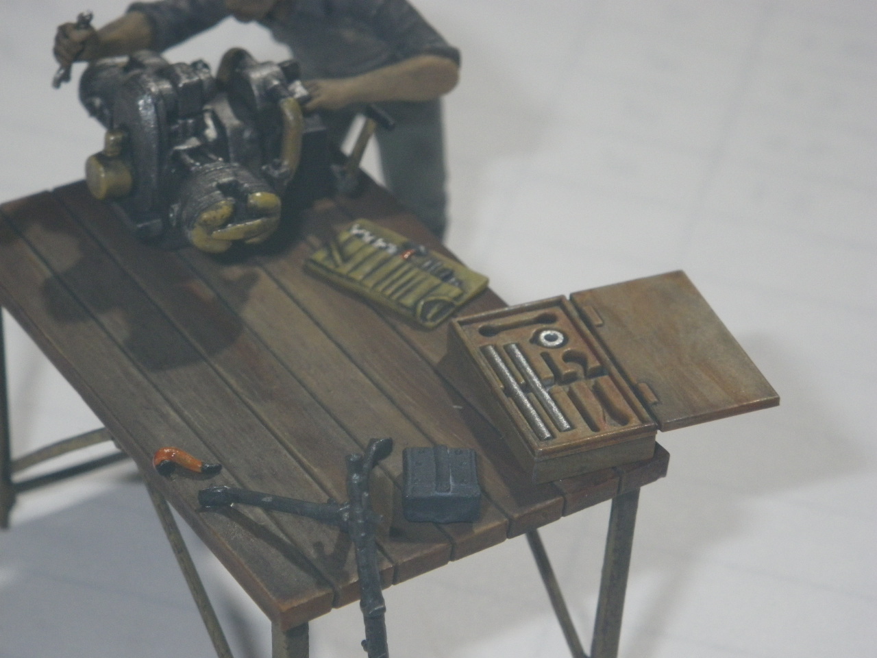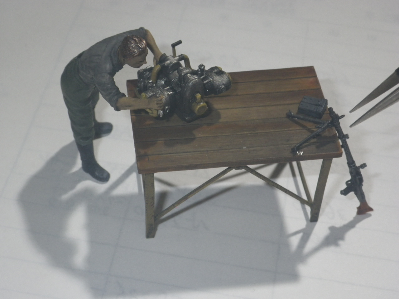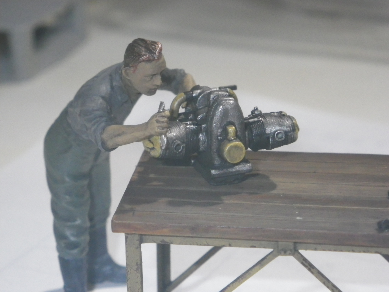 作業台にエンジン整備兵士を配置します