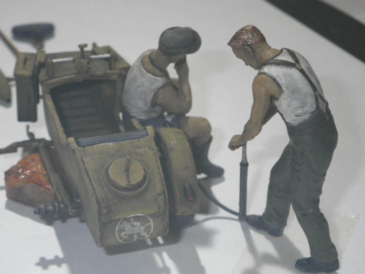 マスターボックス 1/35 独・オートバイ整備シーン4体+サイドカー&アクセサリー【MB35060】 未塗装組立フィギュア