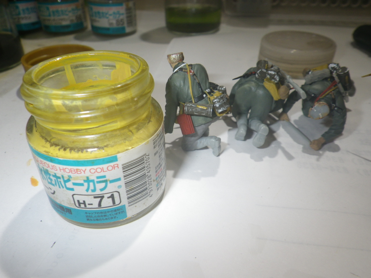 水性ホビーカラー H72 ダークアースで水筒フェルトを塗ります