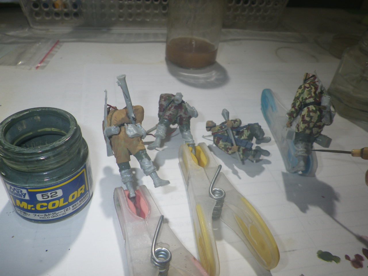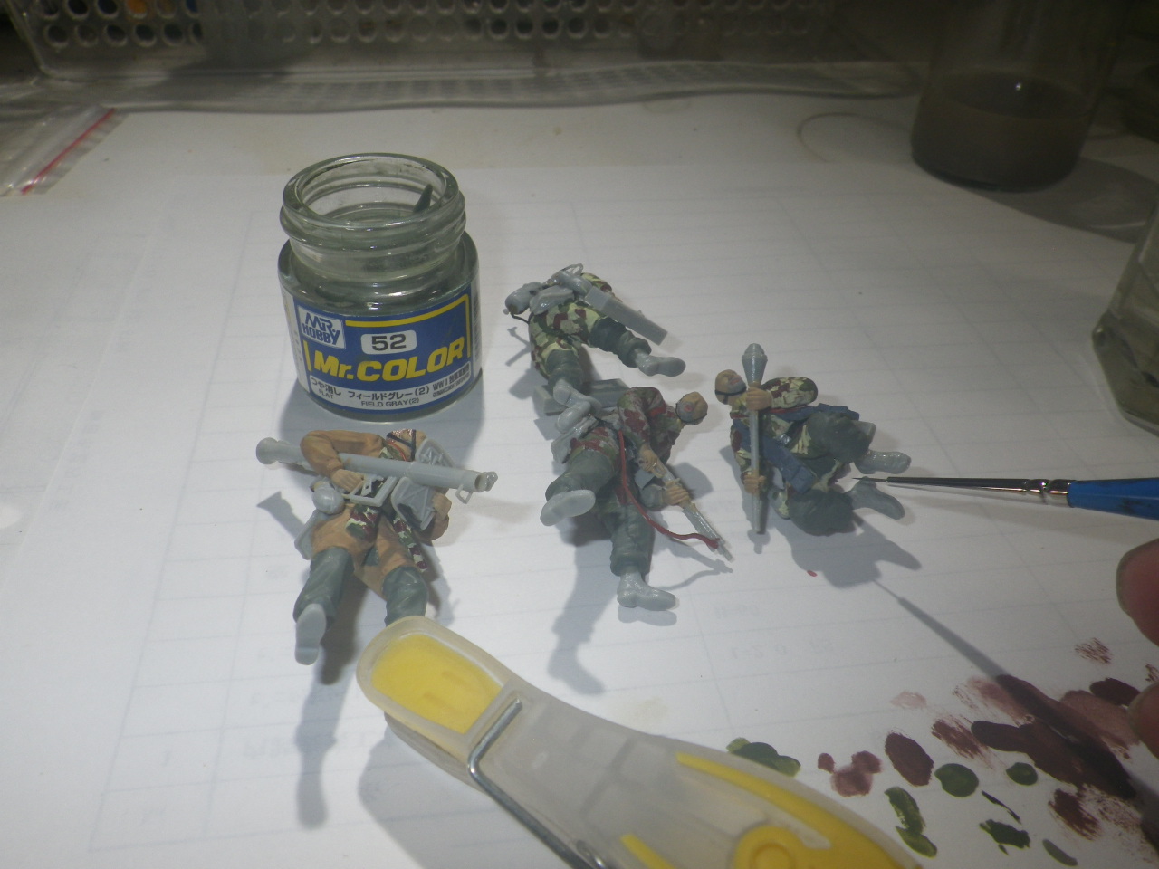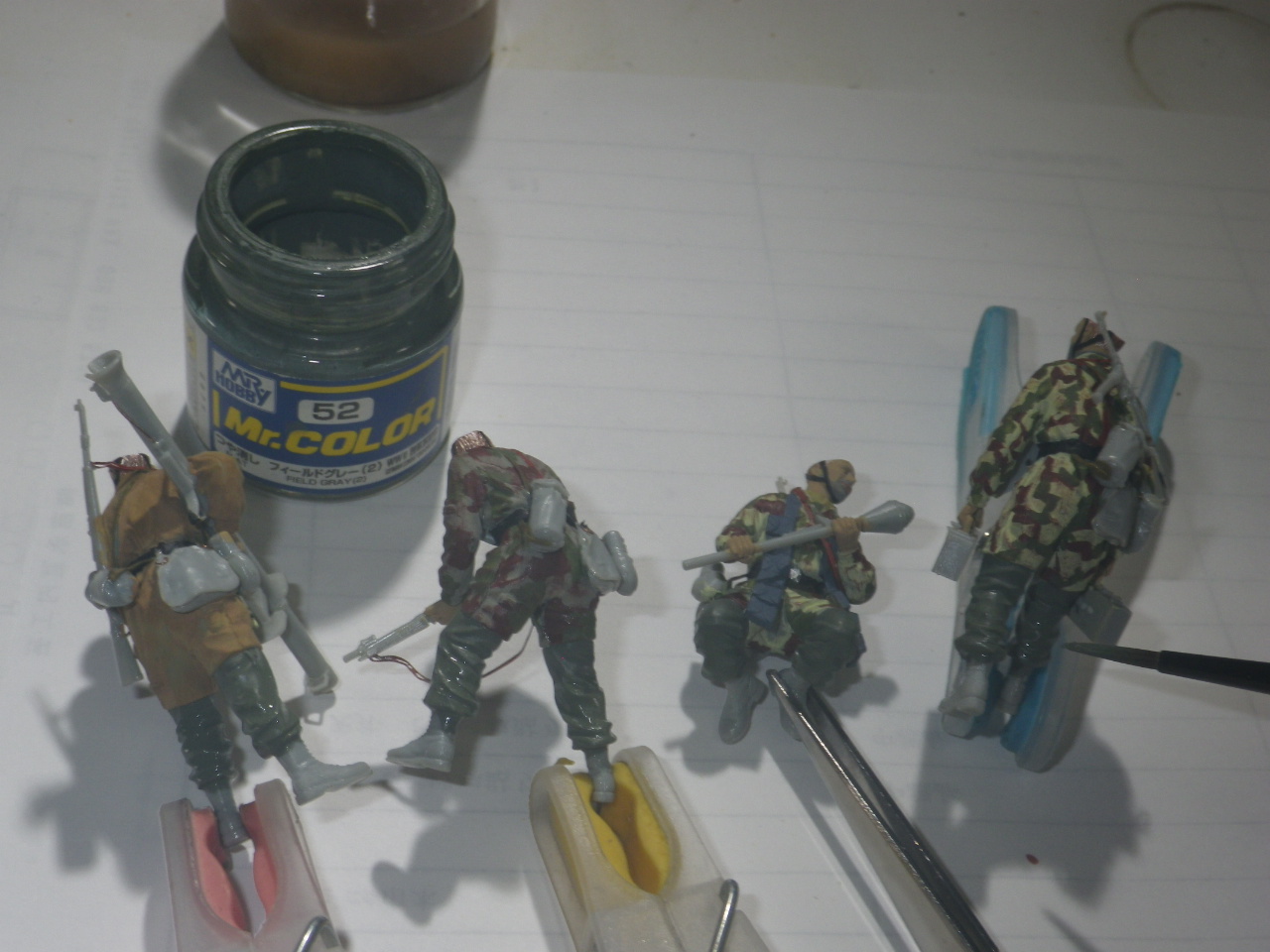Mr.カラー C52 フィールドグレー2(オリーブグレー)でズボンの際廻り先行塗りします