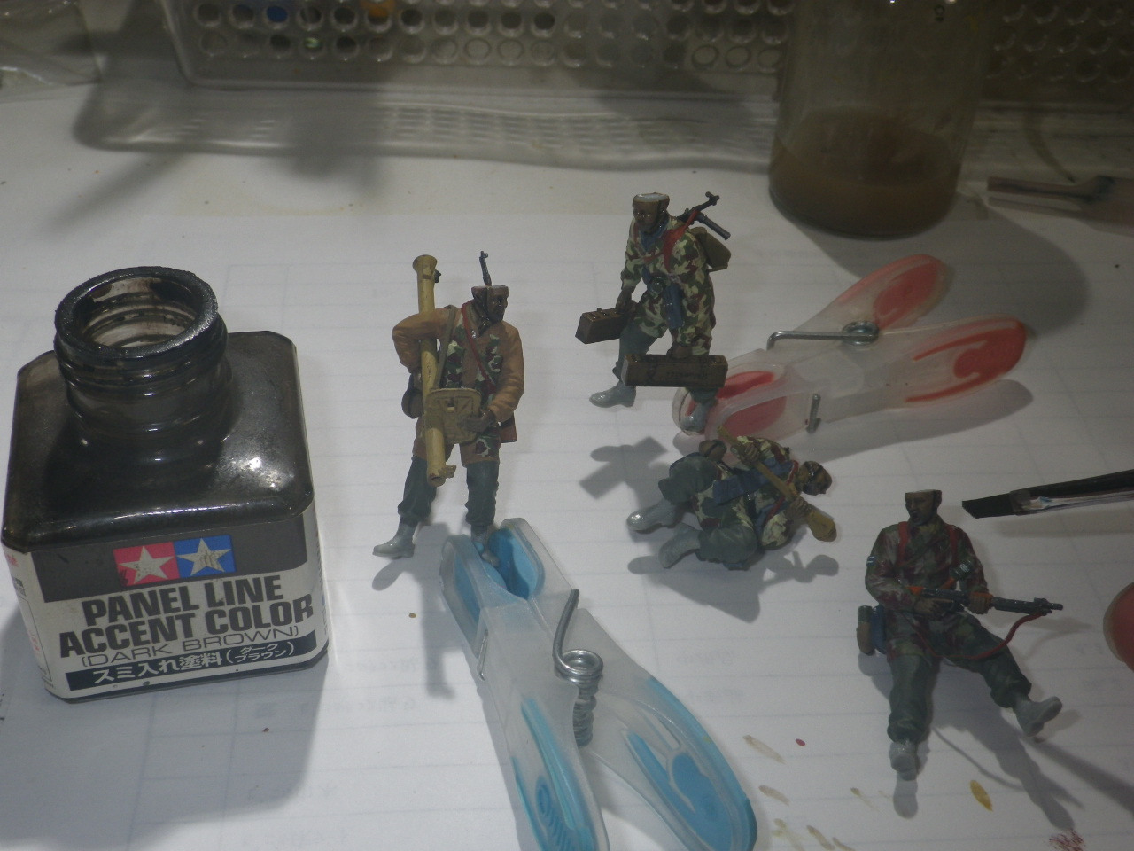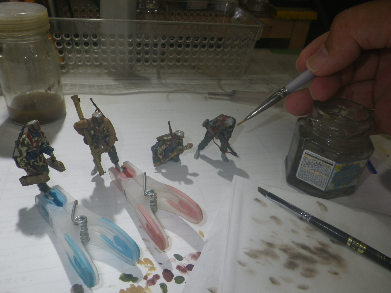 タミヤ スミ入れ塗料 ダークブラウンで顔・手を影落としします