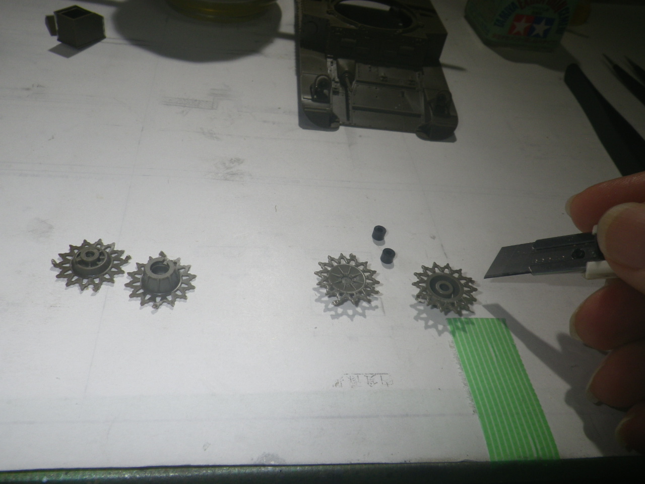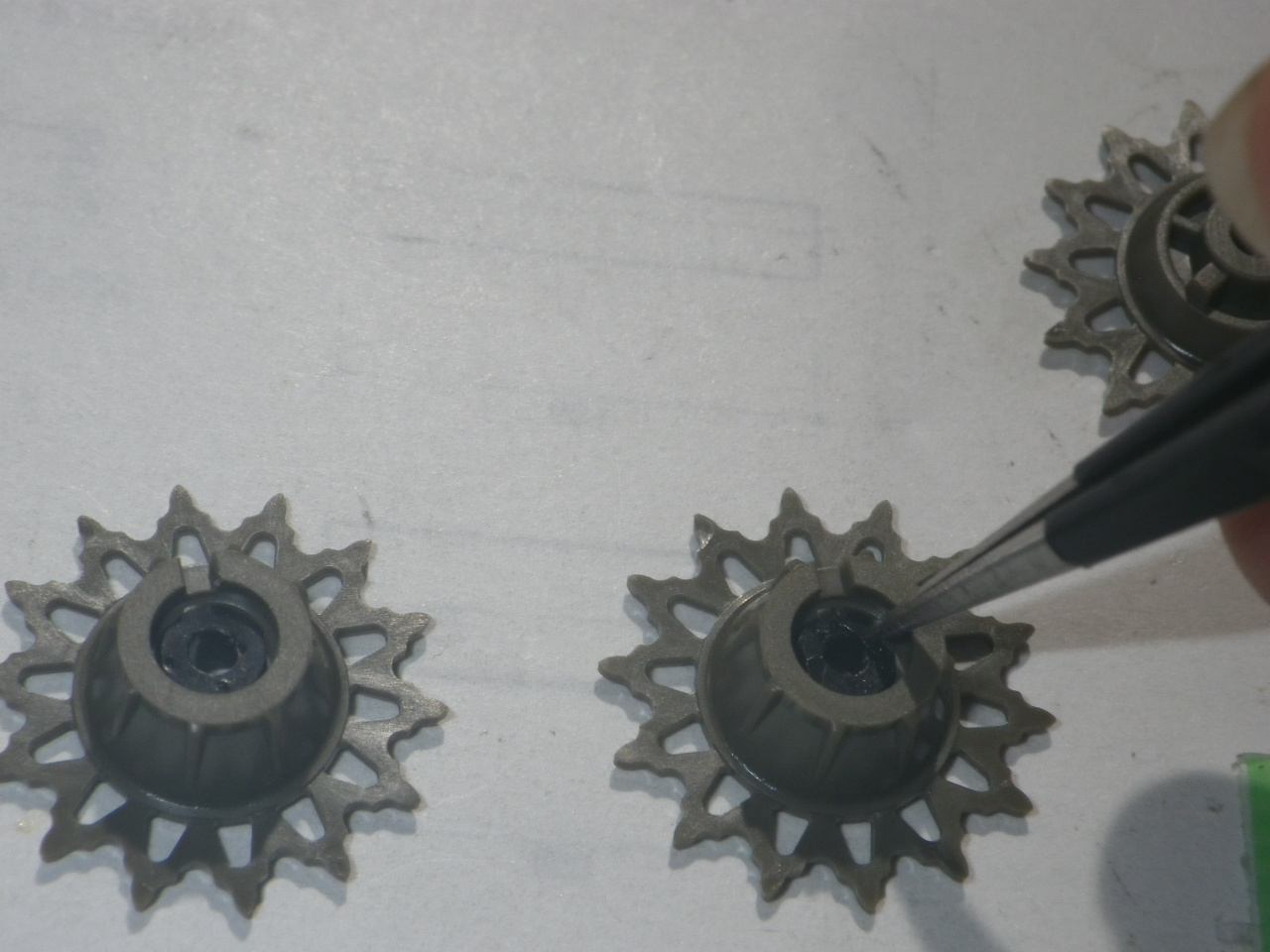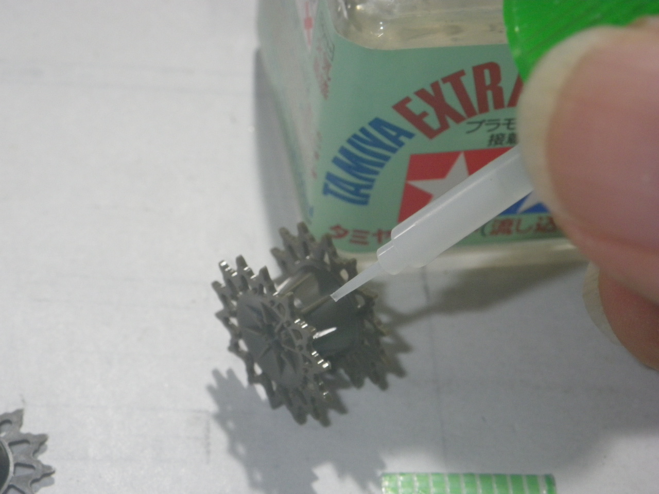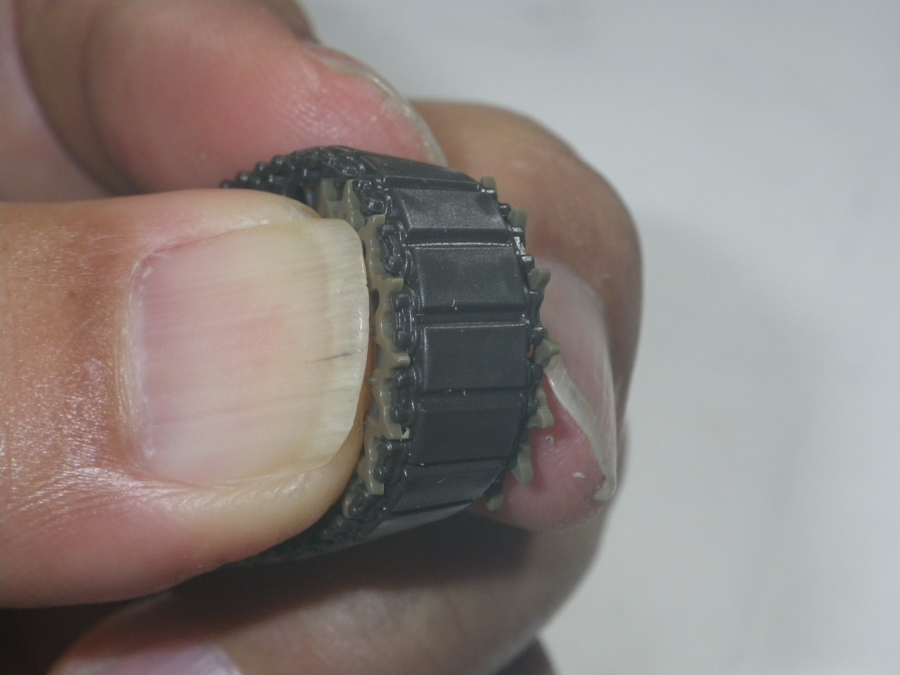 履帯に仮合せして歯と溝のズレが無いように微調整します