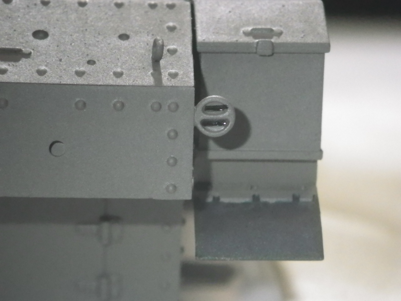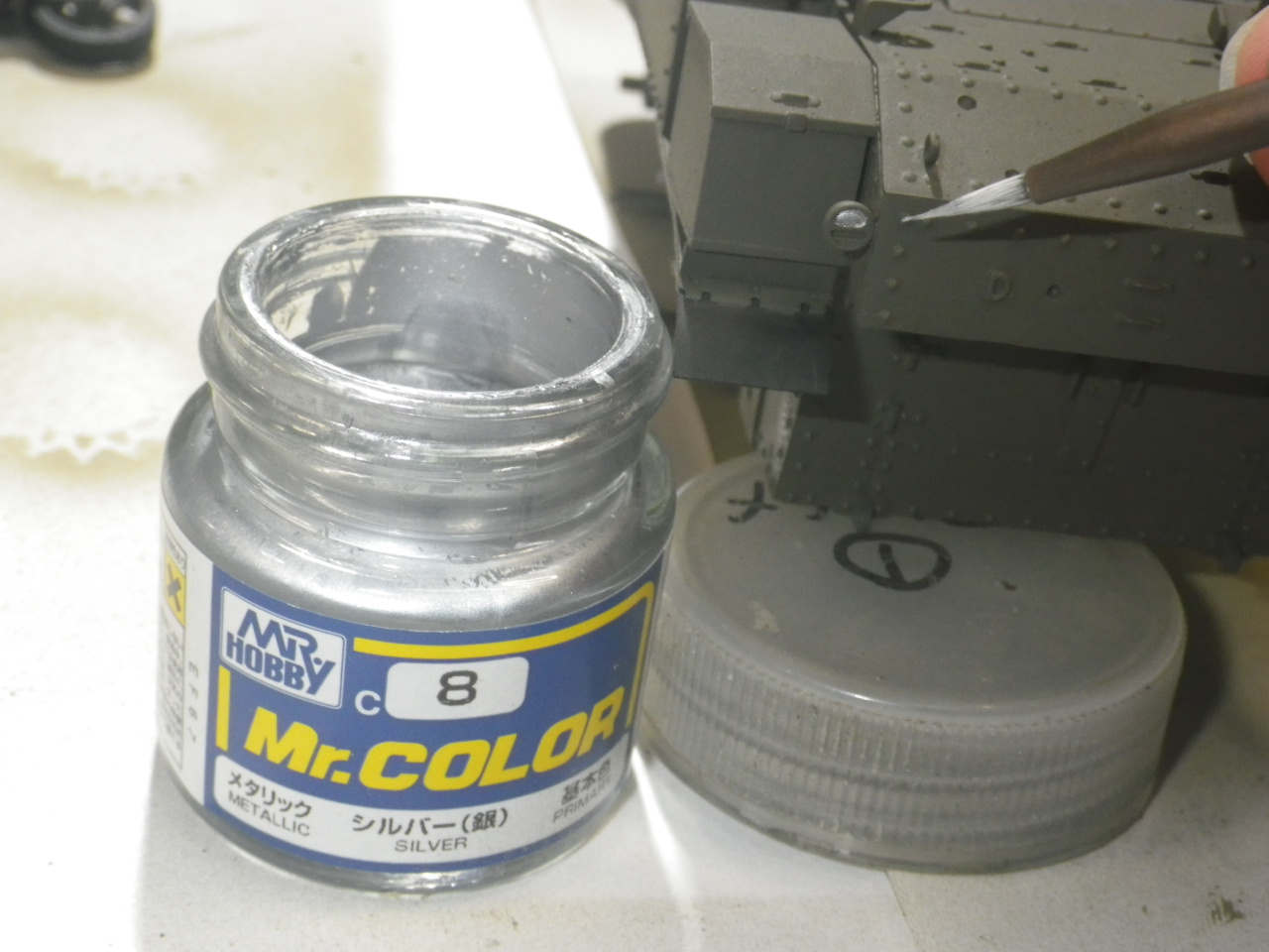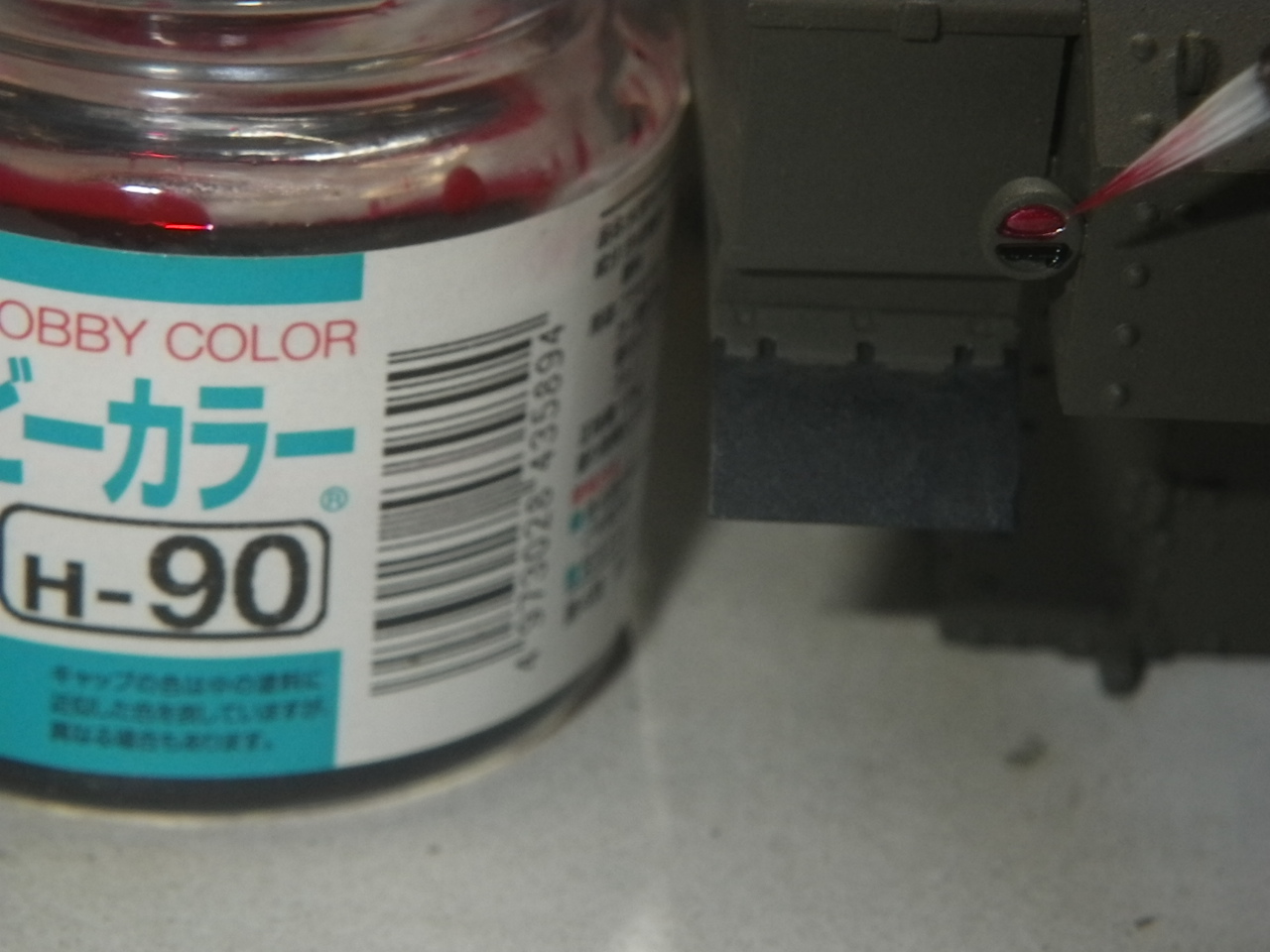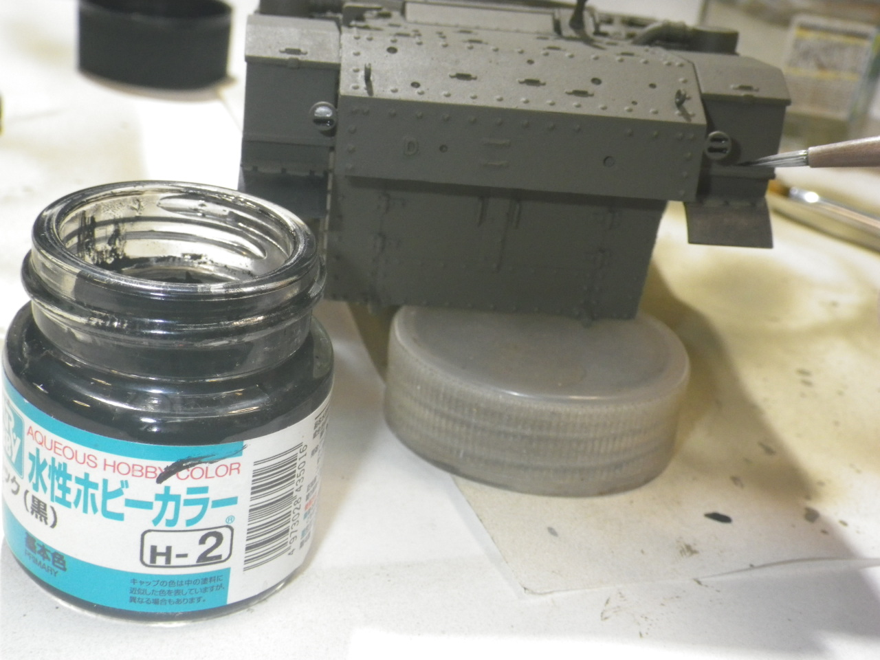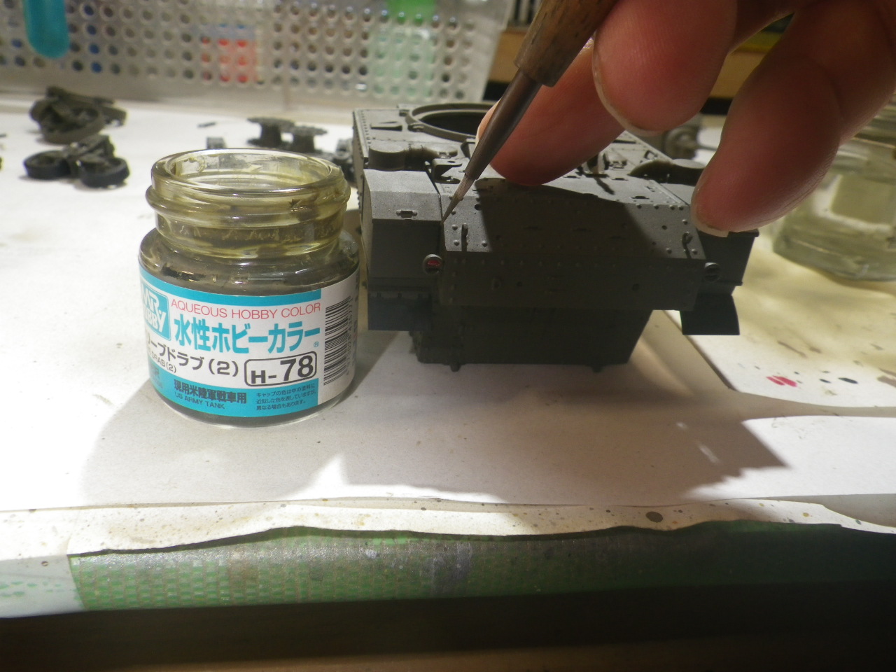 水性ホビーカラー H78 オリーブドラブ (2)ではみ出し部の補修塗りします