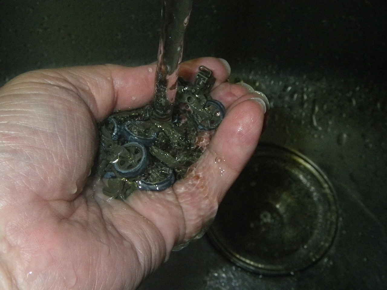 乾燥させます、まだ汚れが付き過ぎと感じれば水洗いを再度行います