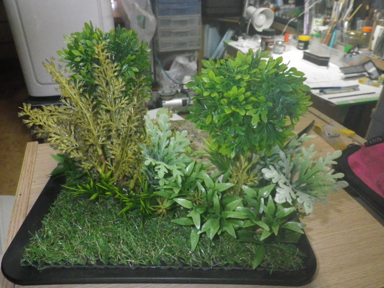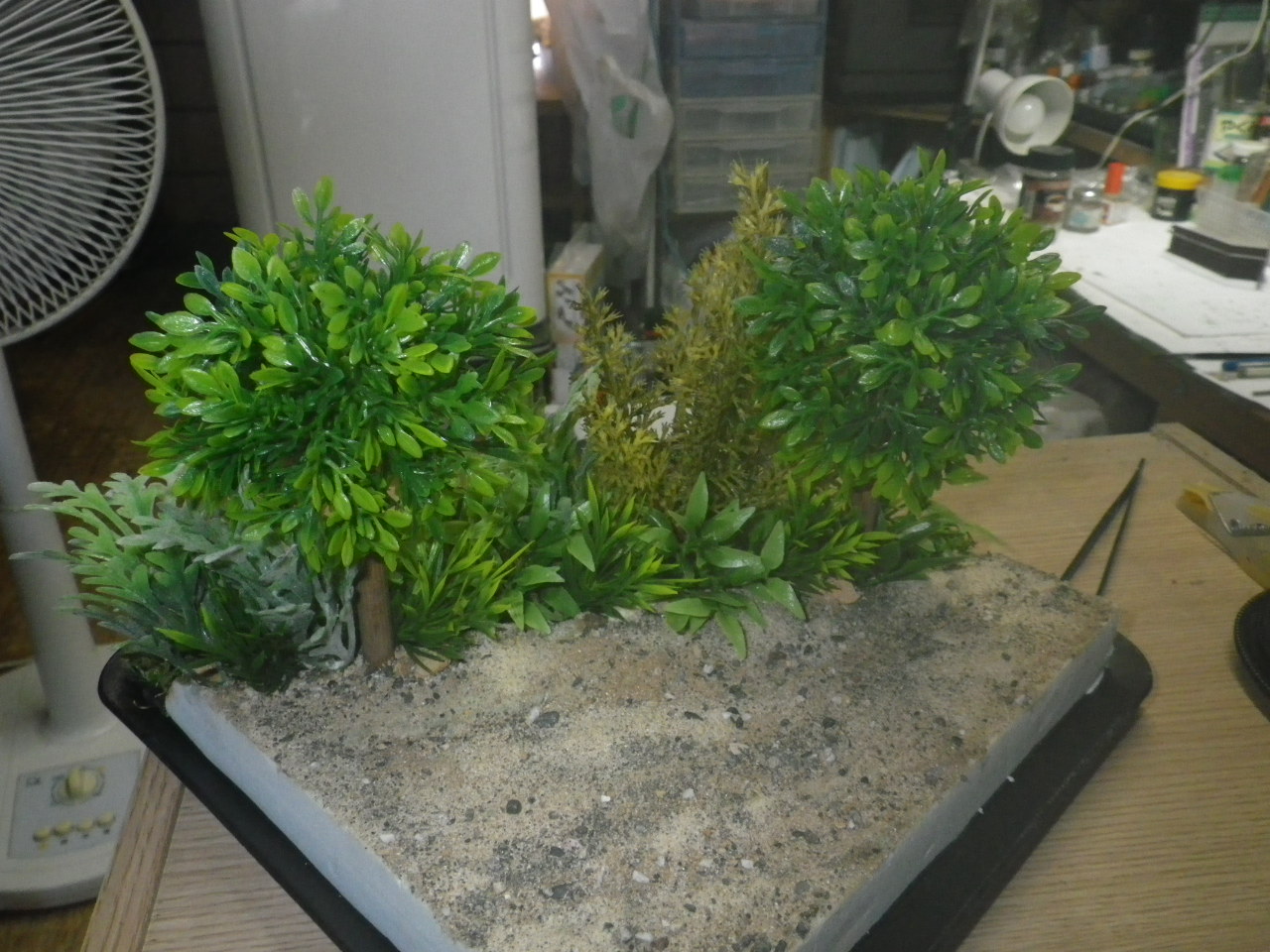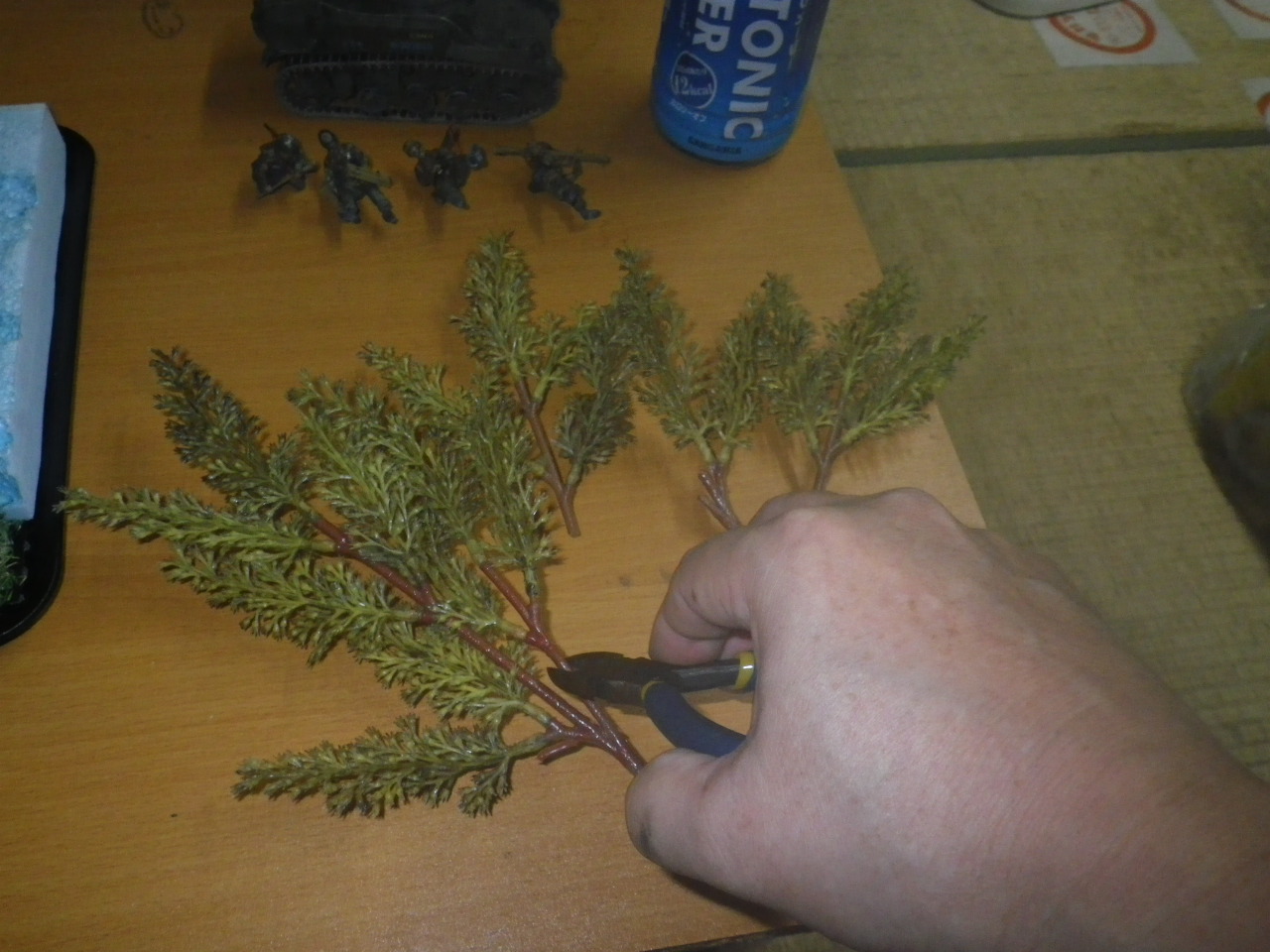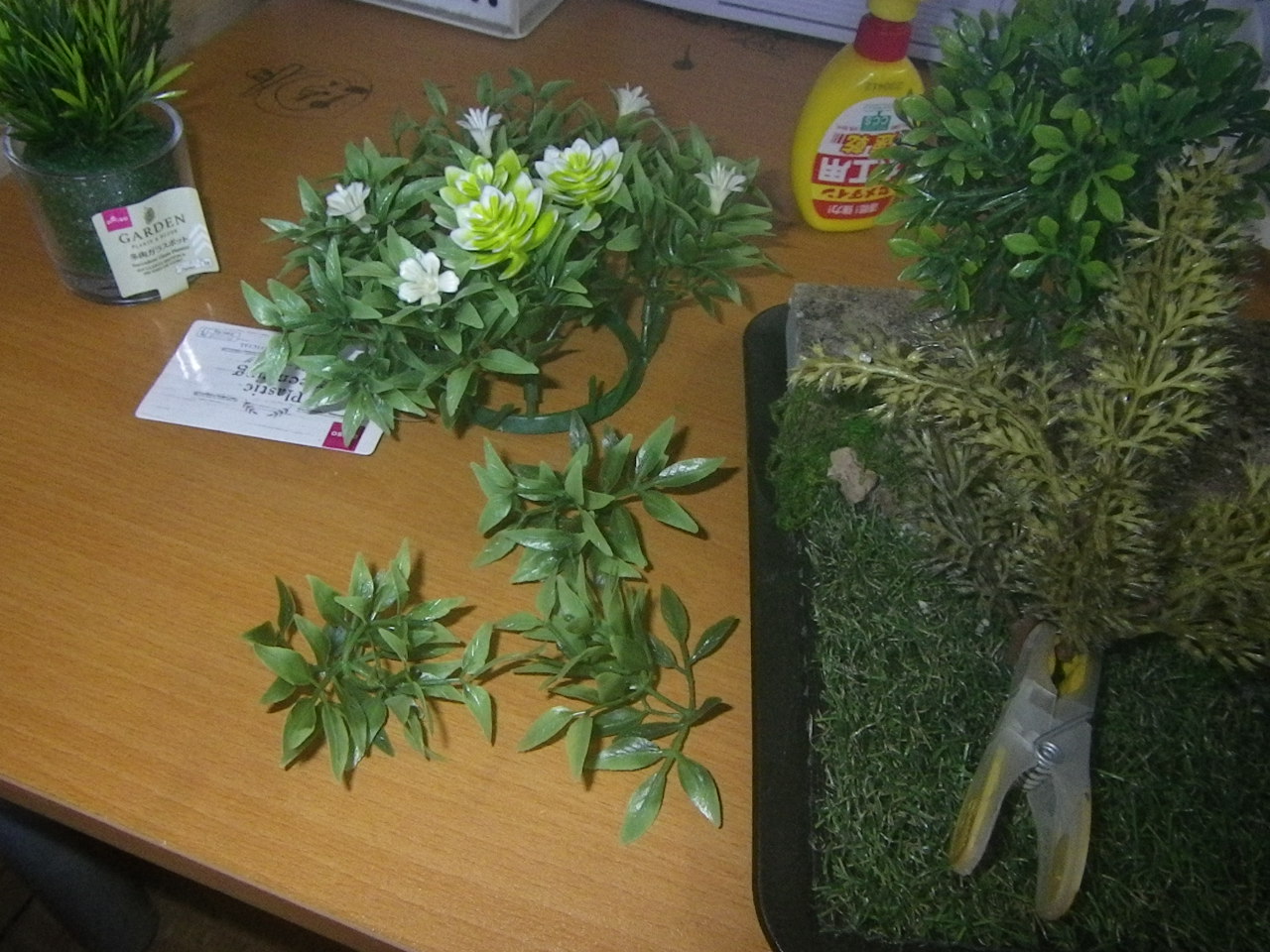 低木用フェイクグリーンを切り出します、場所・季節がらでの樹種の適切などは全く考えていません