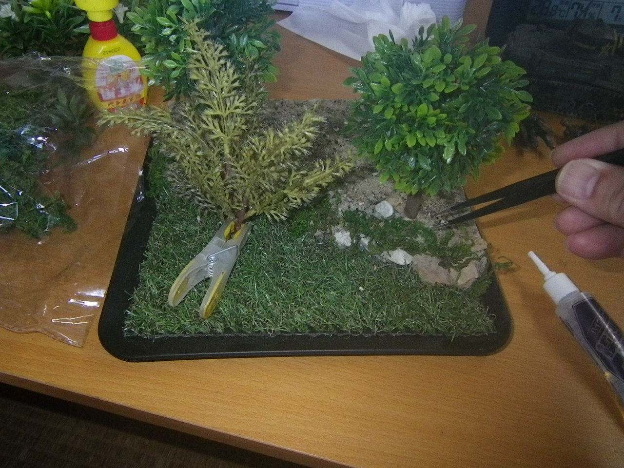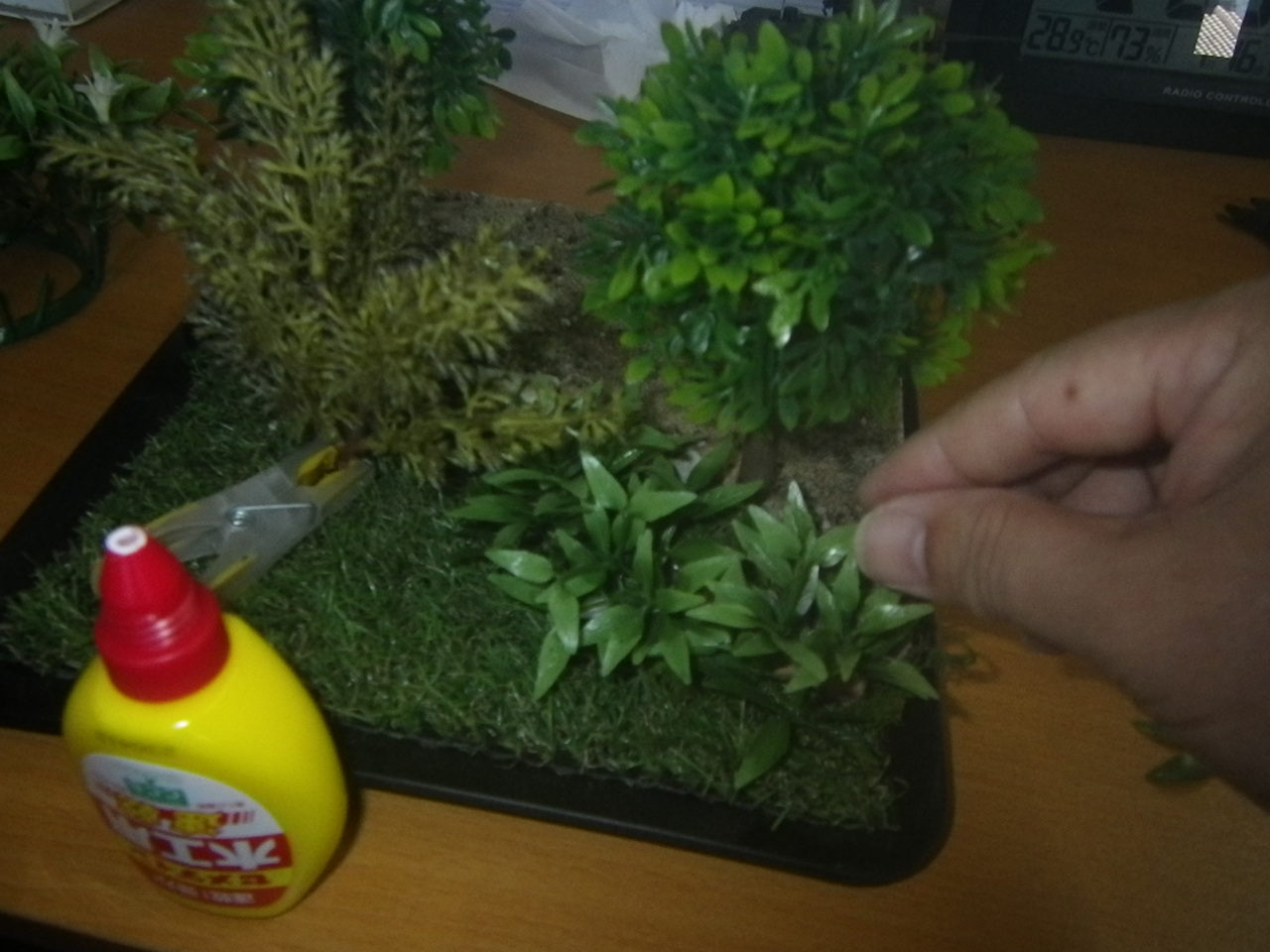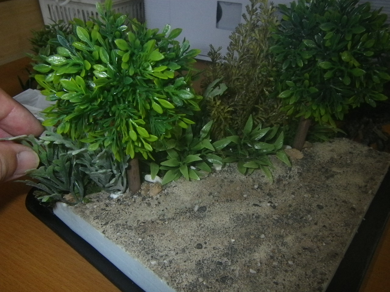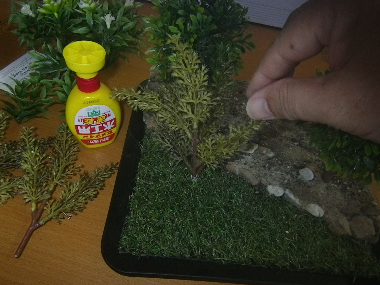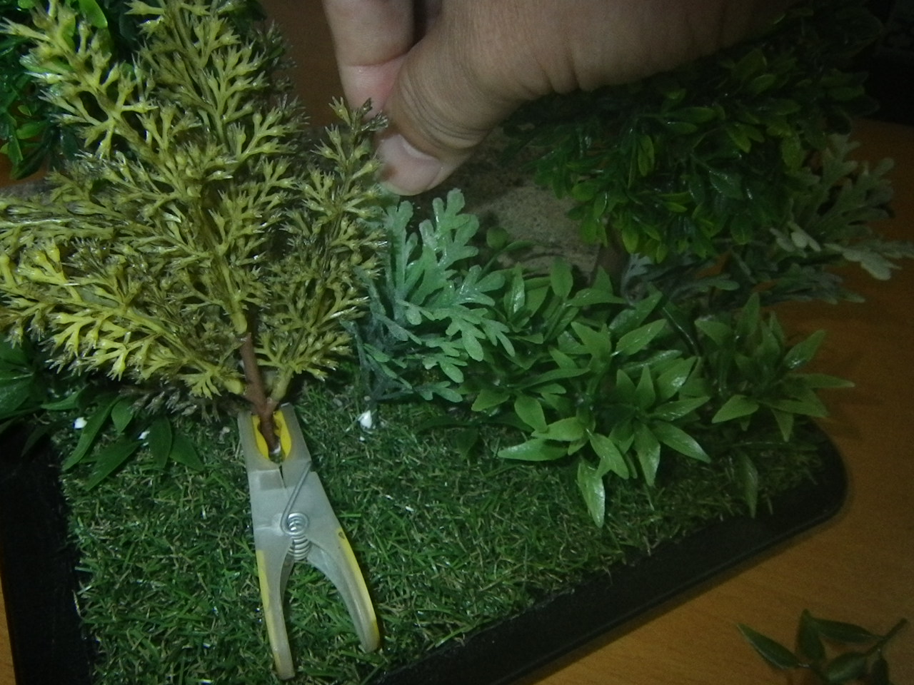 硬化後に開いている隙間に更に草を押し込んでいき草むらを大げさにしていきます