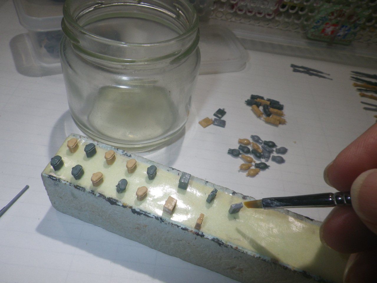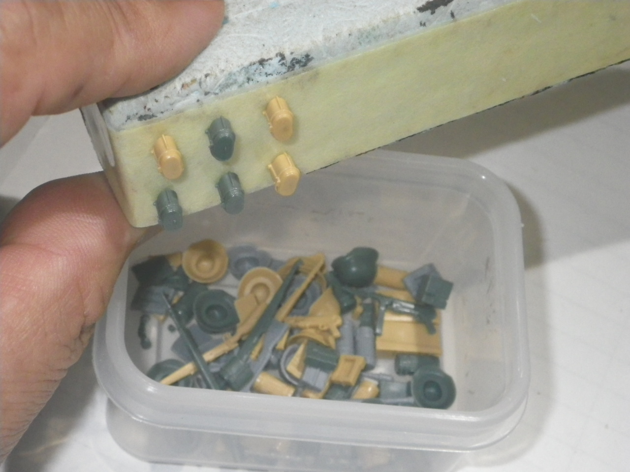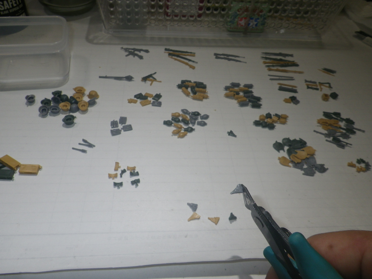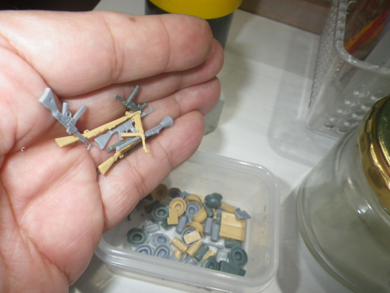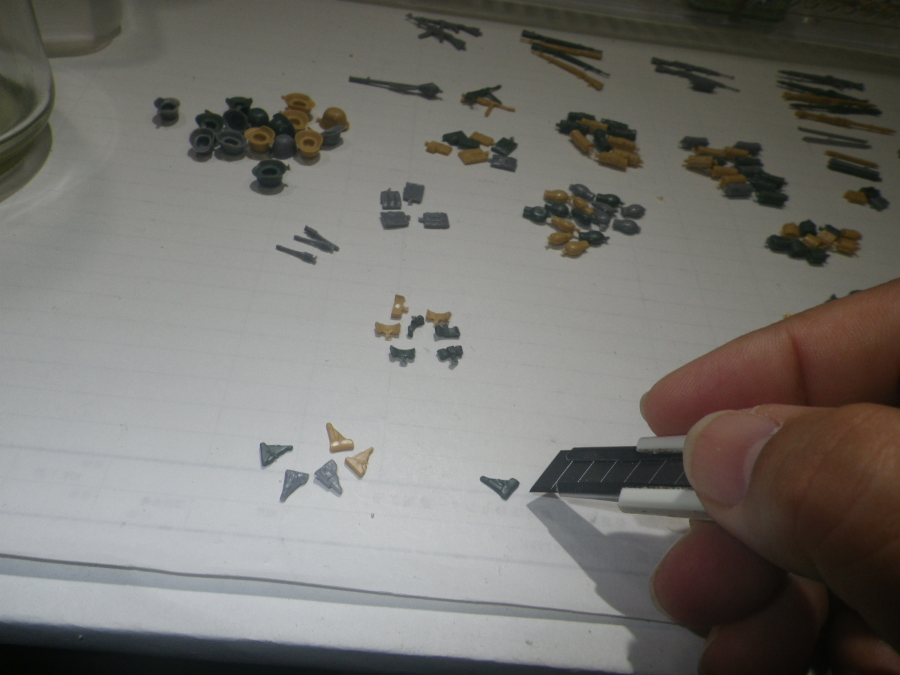 梱包兵士や別車体用のパーツでランナー内で散らばった鋼製の部品の場合がありますがその場合はゲート付きでランナーをある程度残して切除してそのランナー同士を接着して小さい塊りにして硬化後パーツ置場に移します