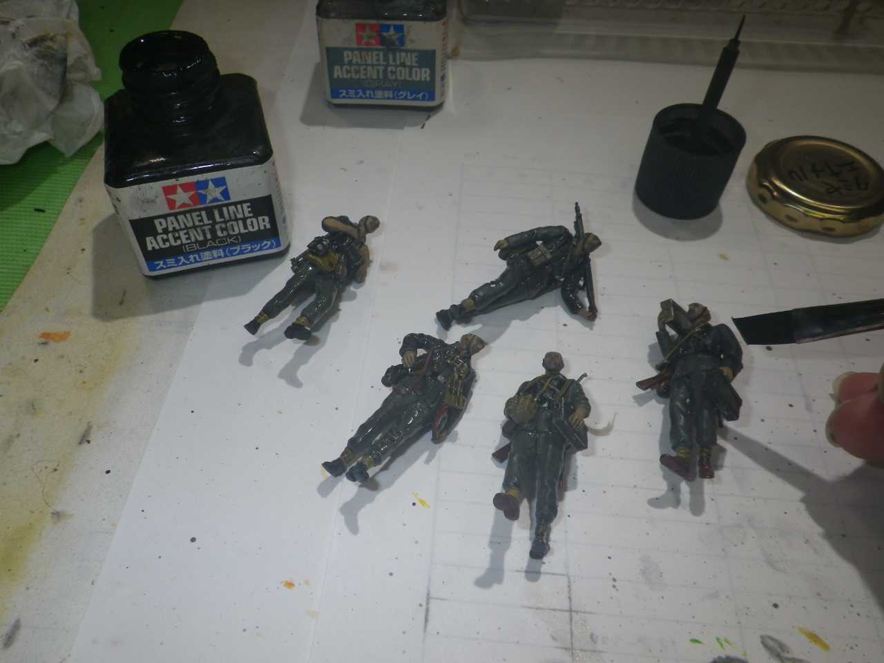 タミヤ スミ入れ塗料 ブラックで服の影落としします