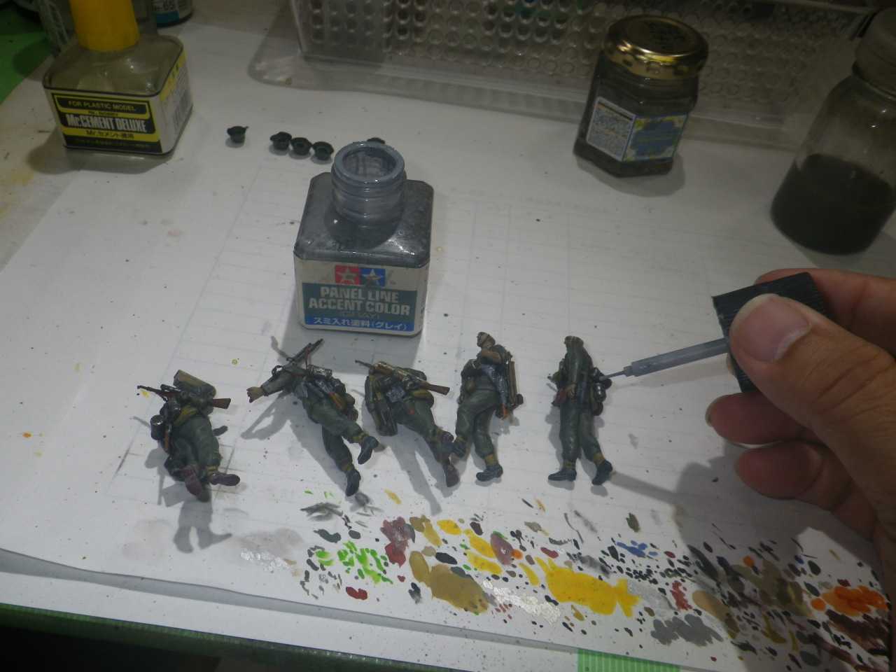 タミヤ スミ入れ塗料 グレイで暗色装備に対比色墨入れします