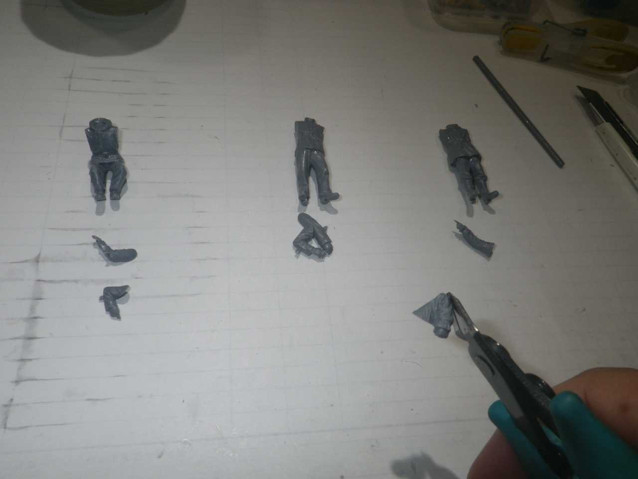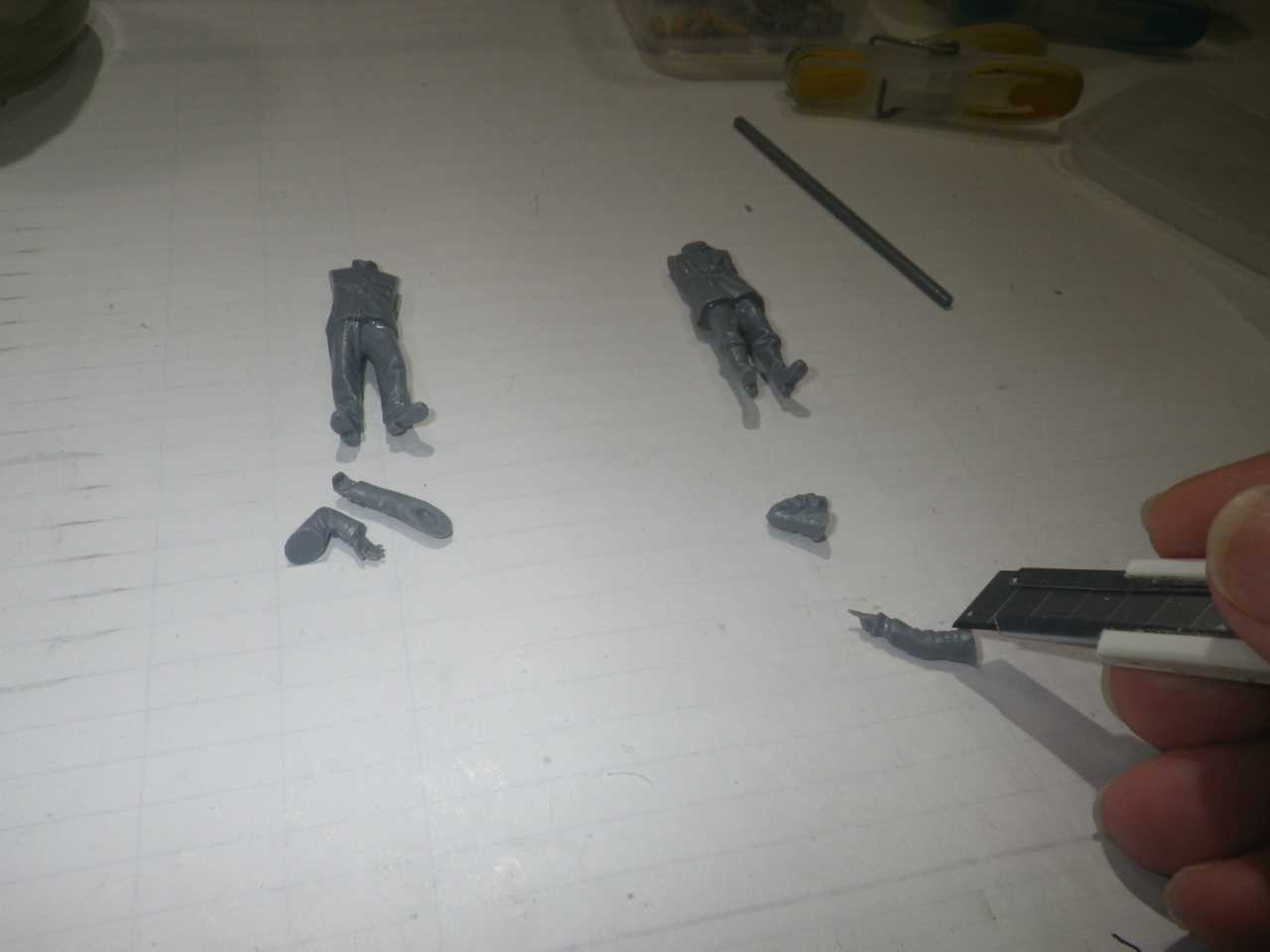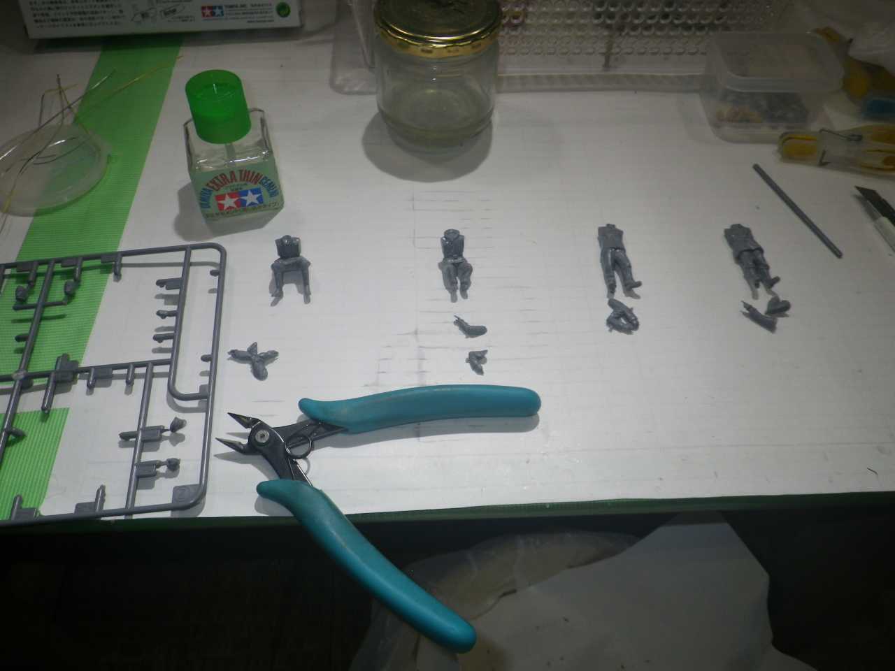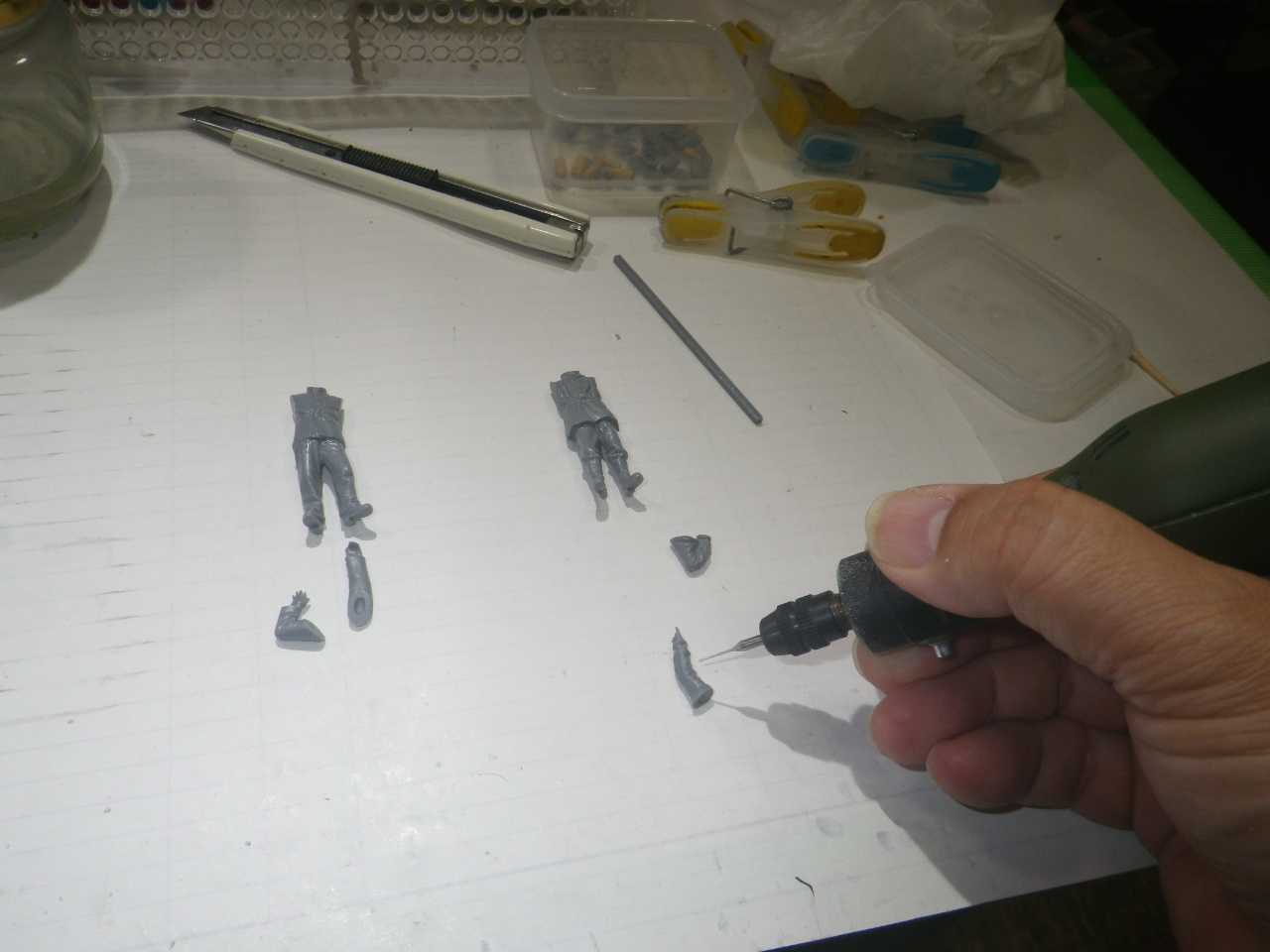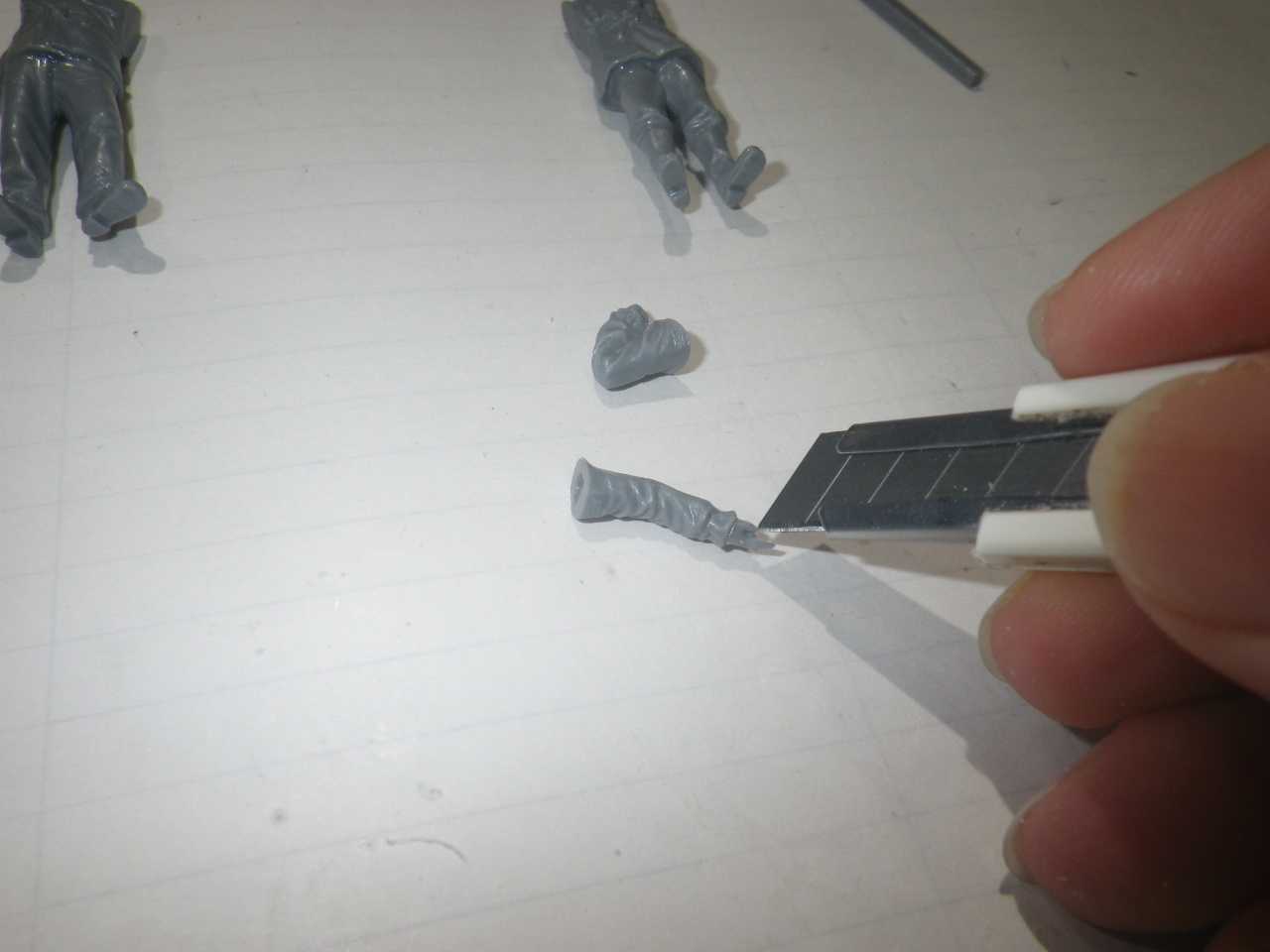 手の指の成型の継目周辺のつぶれをカッター剣先でスジボリします