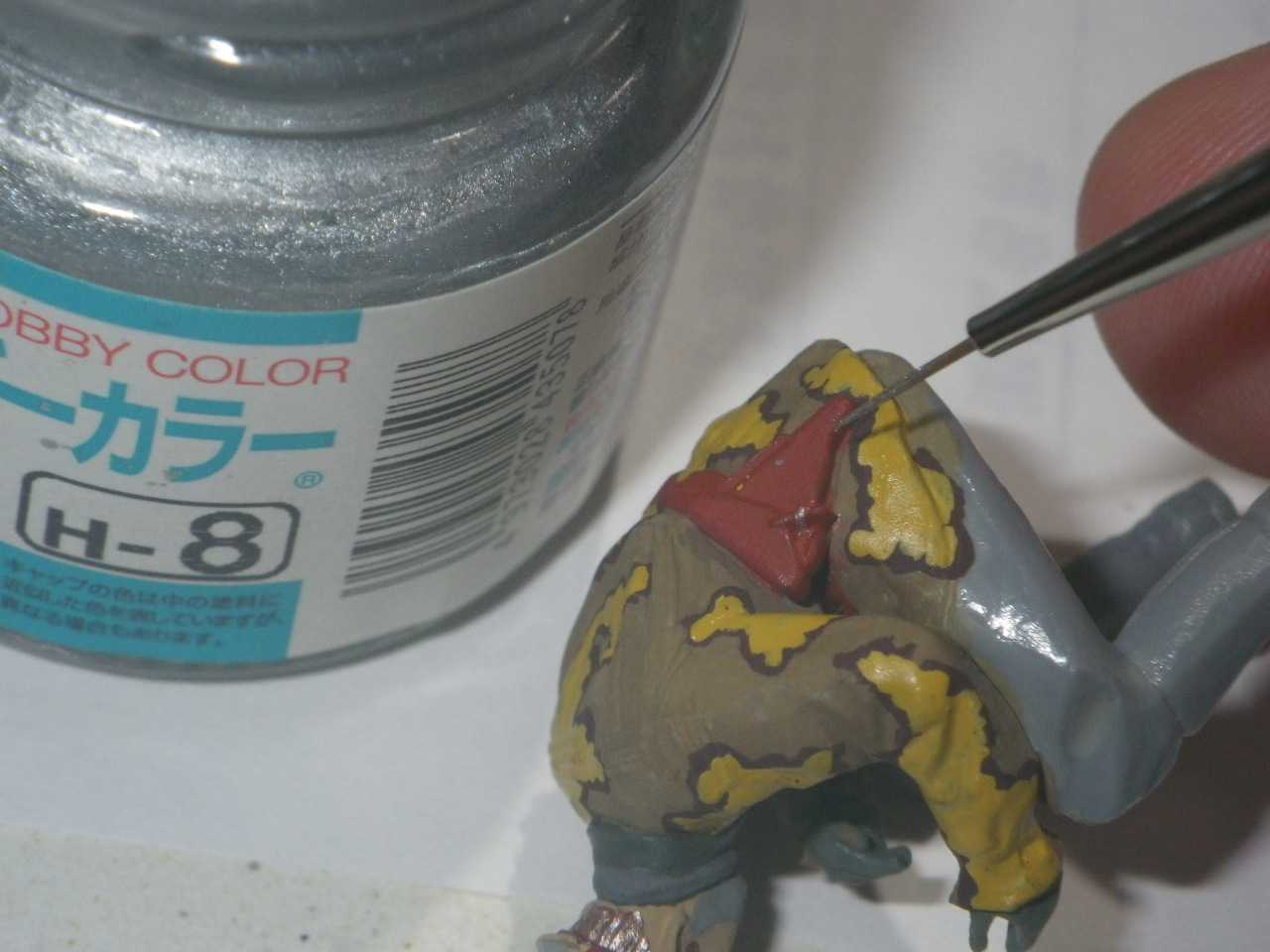 水性ホビーカラー H76 焼鉄色でホルスターのマガジン部を塗り分けます